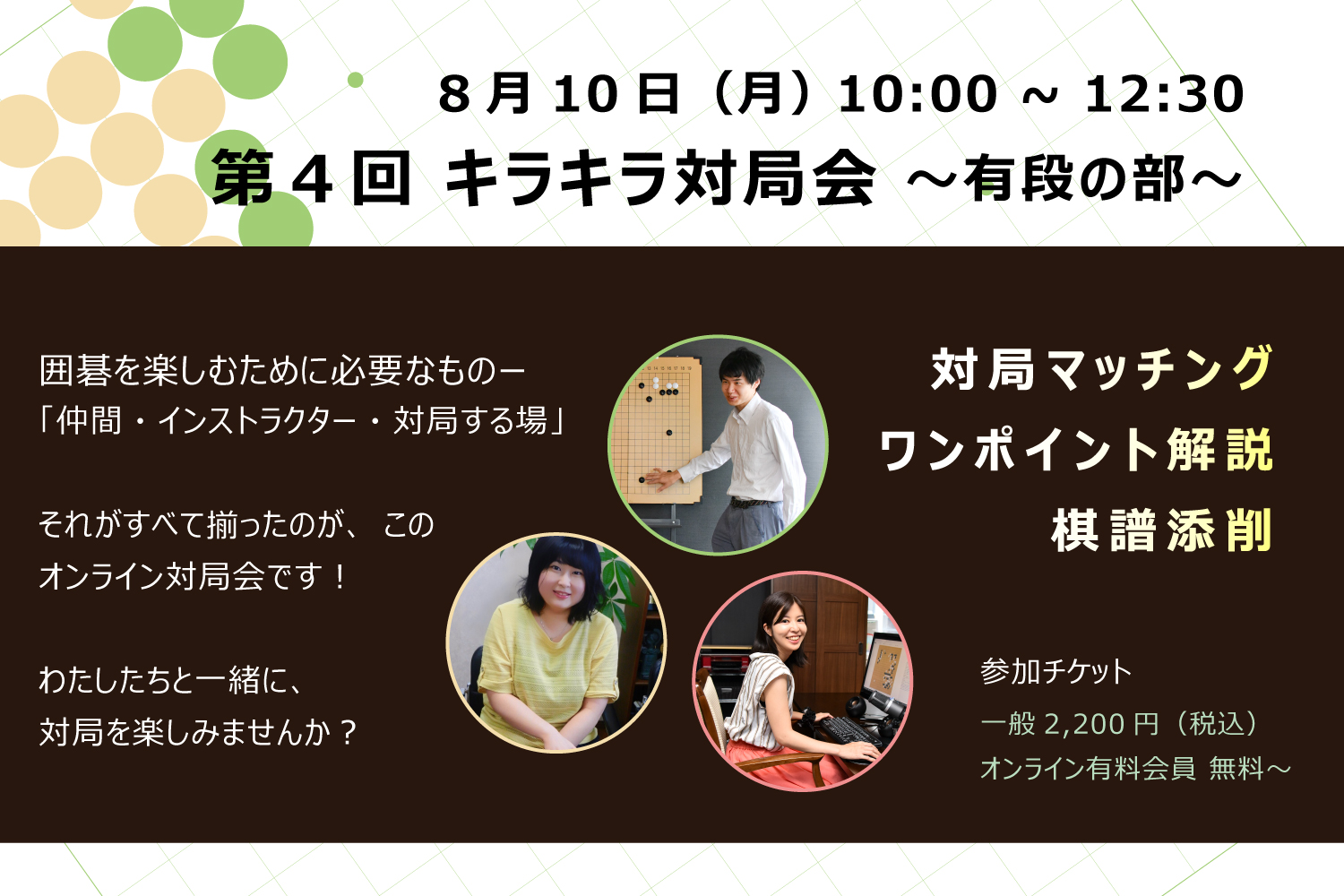 棋力の近い仲間や・気さくなインストラクターとつながって、オンライン対局を楽しみませんか?