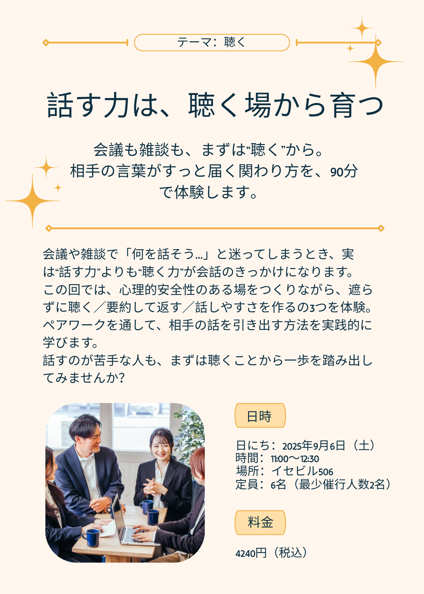 会話の土台となる「聴く力」を体験的に学ぶ90分。
