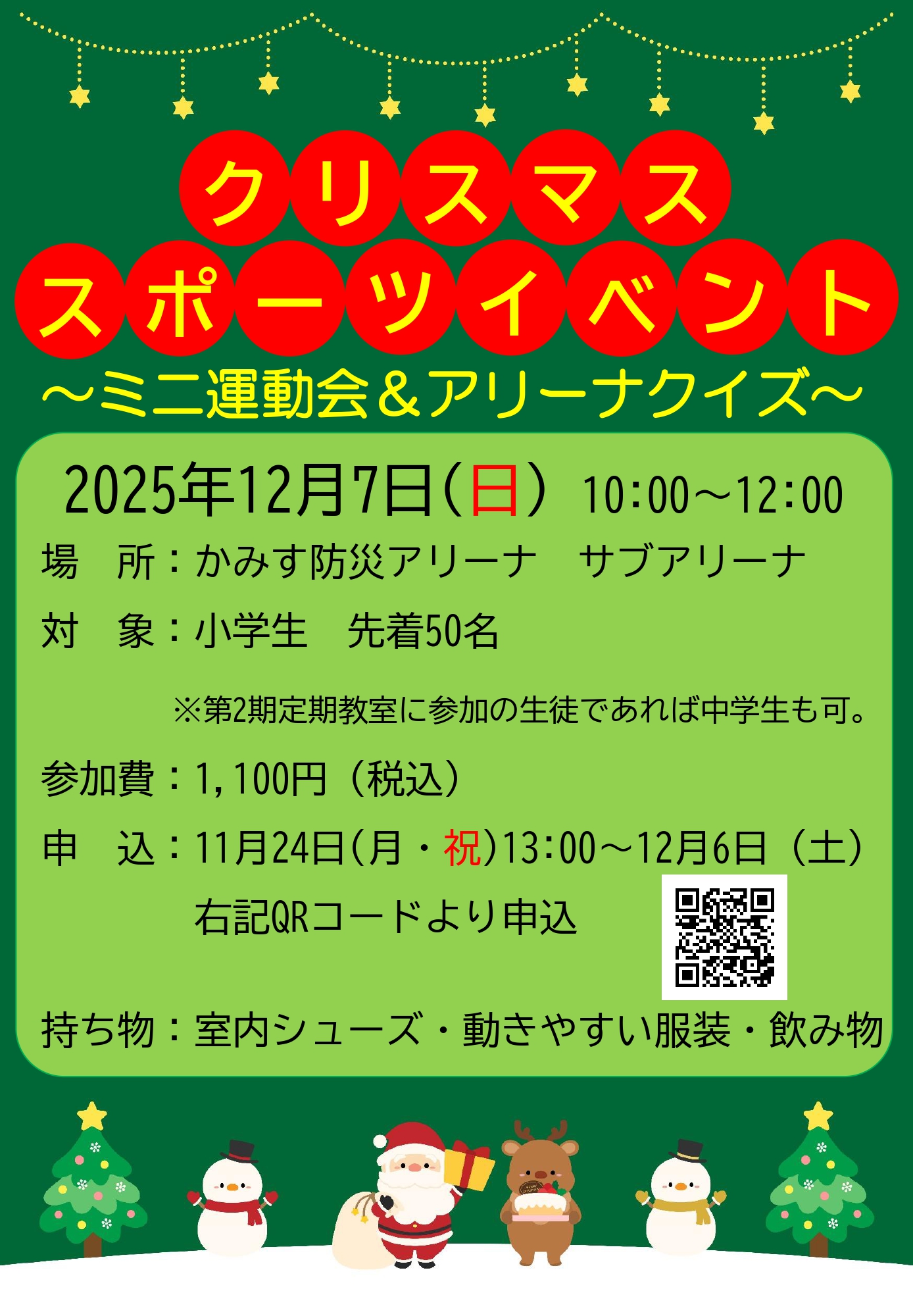 ※保護者・ご兄弟は、観覧席で見学となります。※第二期定期教室に参加している生徒であれば中学生もご参加出来ます。