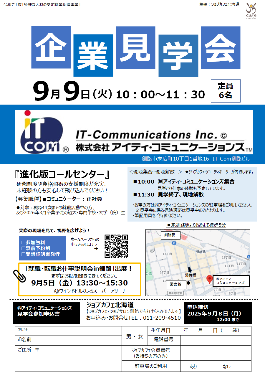 9月9日(火)に開催する企業見学会の参加フォームです。