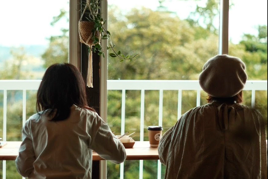 雑貨店の店内にて、窓側に向けてテーブルを配置いたします。景色を眺めながらゆっくりお過ごしください。