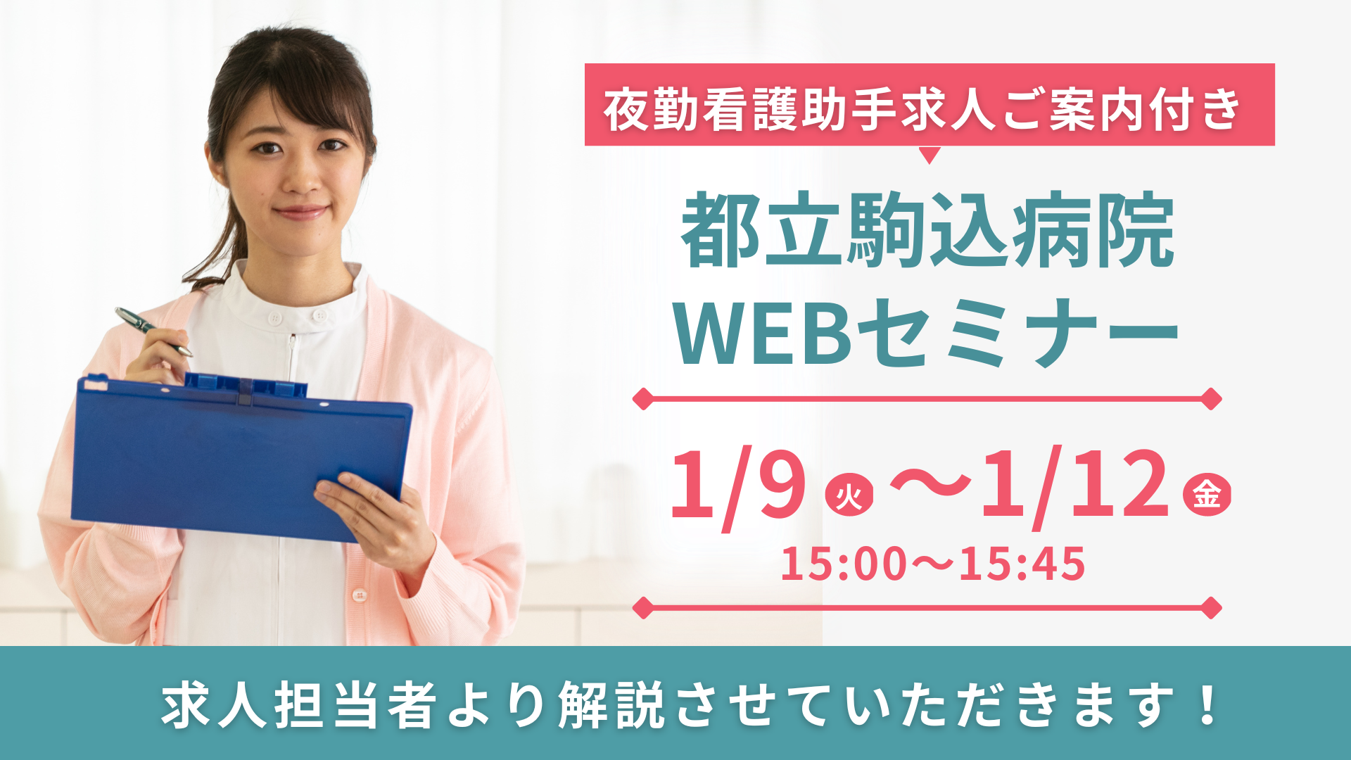 都立駒込病院にて急募の看護助手求人がございますので、こちらのお仕事について、WEBセミナーを開催いたします!