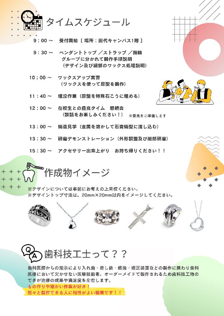 当日はだれでも参加できるオープンキャンパスも開催されていますが、特別に精華学園の生徒のみで体験実習を行います。