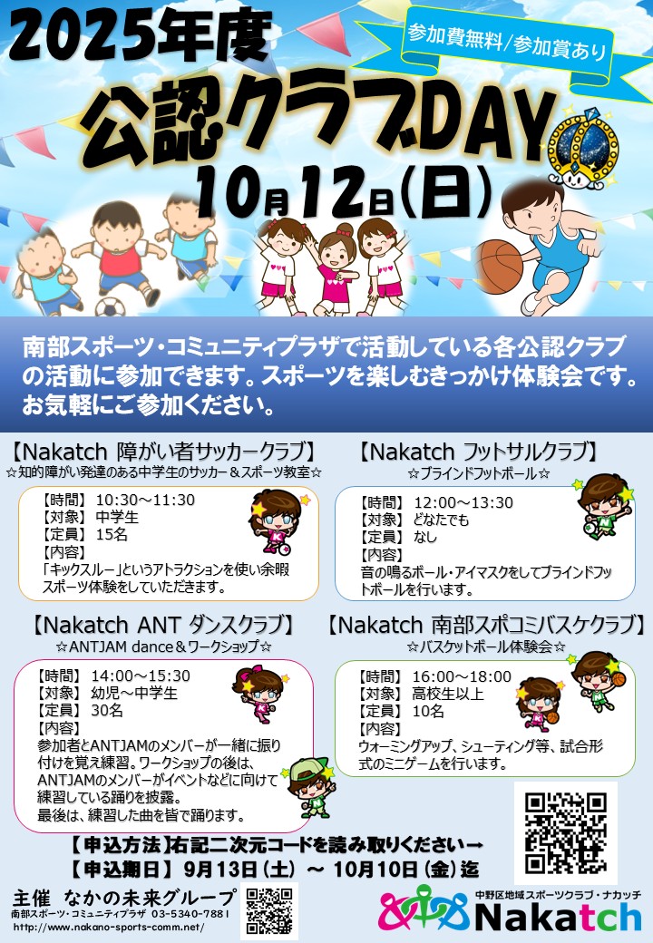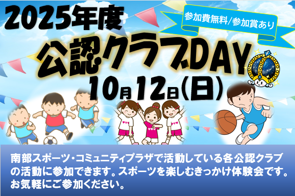 南部スポーツ・コミュニティプラザで活動している各公認クラブの活動に参加できます。スポーツを楽しむきっかけ体験会です。