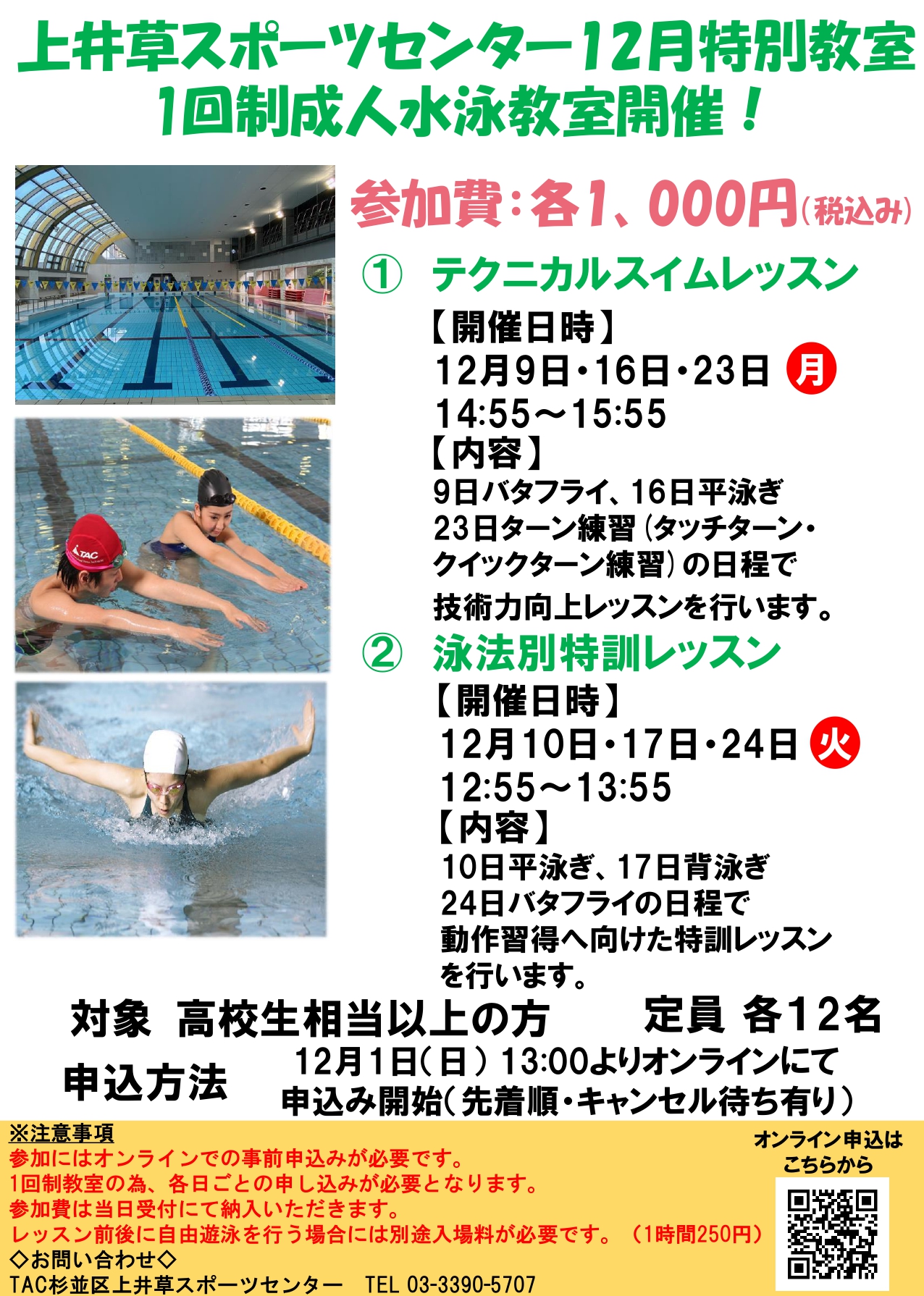 9日バタフライ、16日平泳ぎ、23日ターン練習(タッチターン・クイックターン練習)の日程でレッスンを行います。