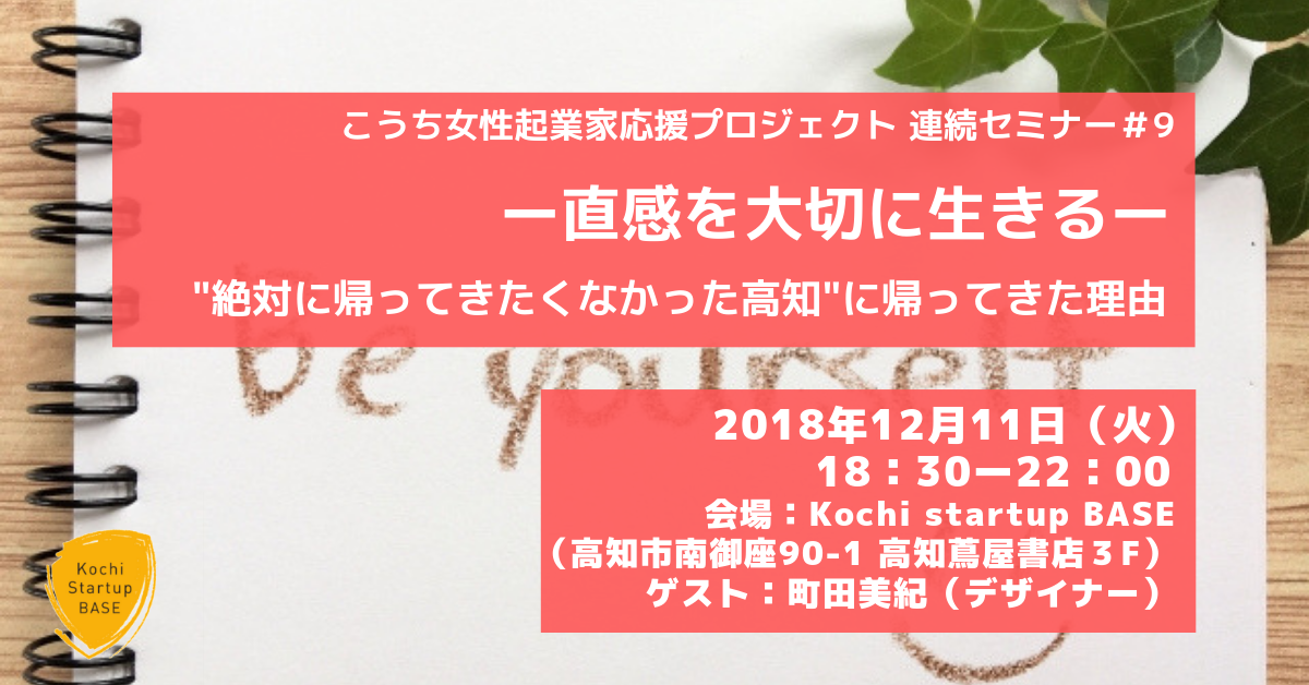 こうち女性起業家応援プロジェクト、第9回目となるセミナーでは、デザイン事務所や、商品の企画・発売・ワインバル運営といった様々な事業と、子育て・家庭を両立されている町田美紀さんをゲスト講師にお迎えします。