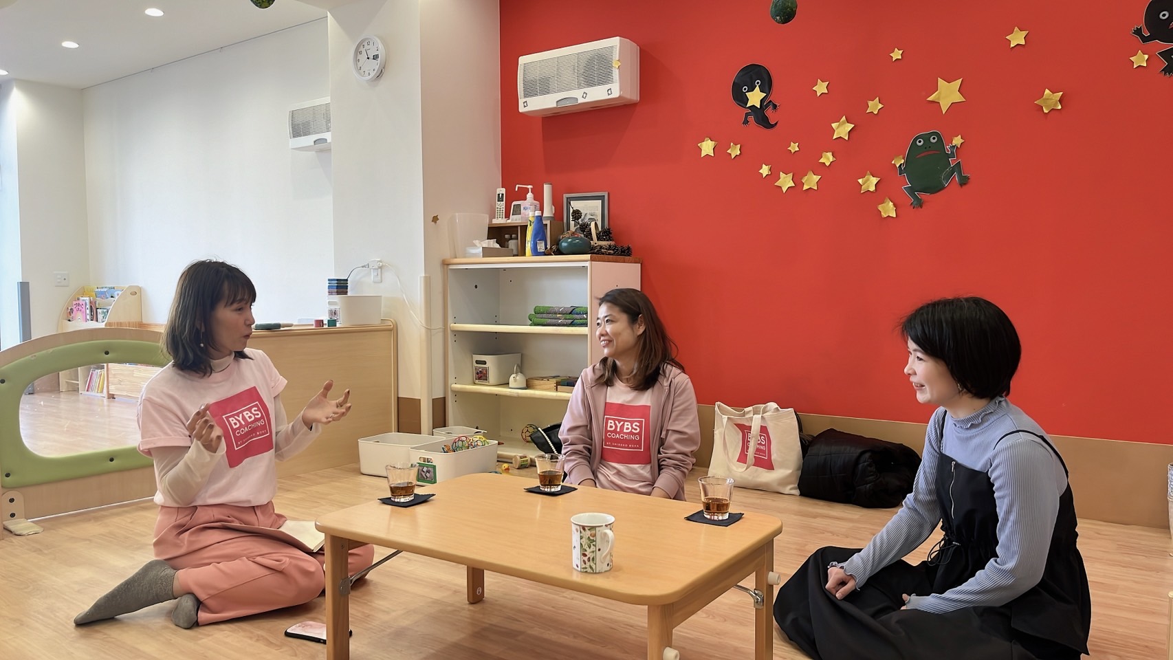 、非認知能力のパイオニア、ボーク重子さんの開催しているBYBSコーチングのお二人が来園、皆様のお話しを伺って子育てにエッセンスをくださいます。