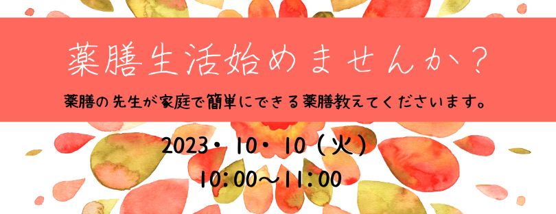 薬膳の先生が夏の疲れや秋の入り口にぴったりの薬膳メニューを教えてもらいます。試食のご用意もいたします。