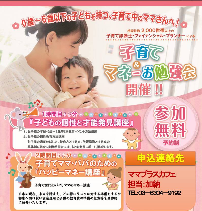 また、オマケとして、今後の教育資金の準備の仕方や、その方法のひとつとして注目される「資産運用」についてのプチセミナーもします。
