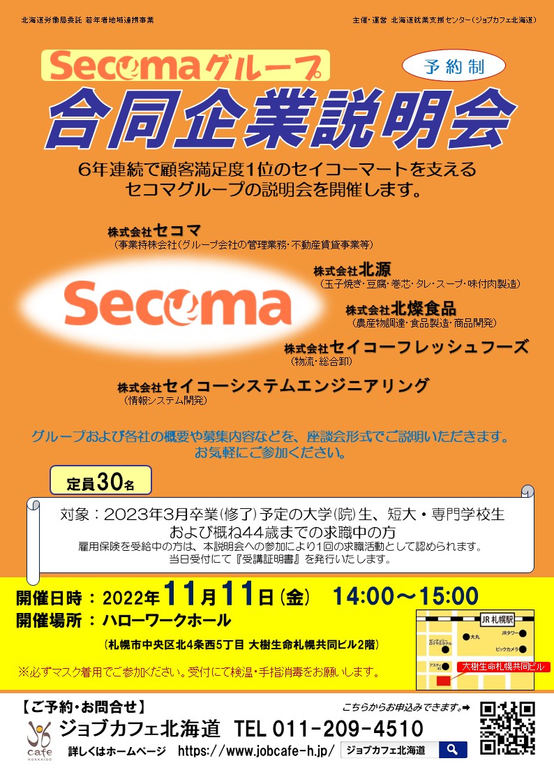 6年連続で顧客満足度1位のセイコーマートを支えるセコマグループの説明会を開催します。
