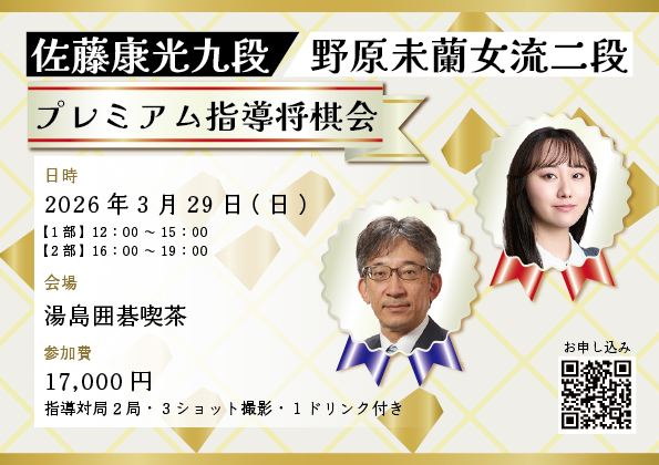 2026年3月29日(日)、多くの将棋ファンに親しまれているお二人を湯島囲碁喫茶にお迎えし、少人数制の贅沢な指導対局会を開催いたします。