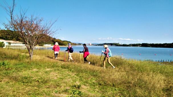 途中、正しいノルディックウォーキング方法をレクチャーします。顔面体操も実施します!