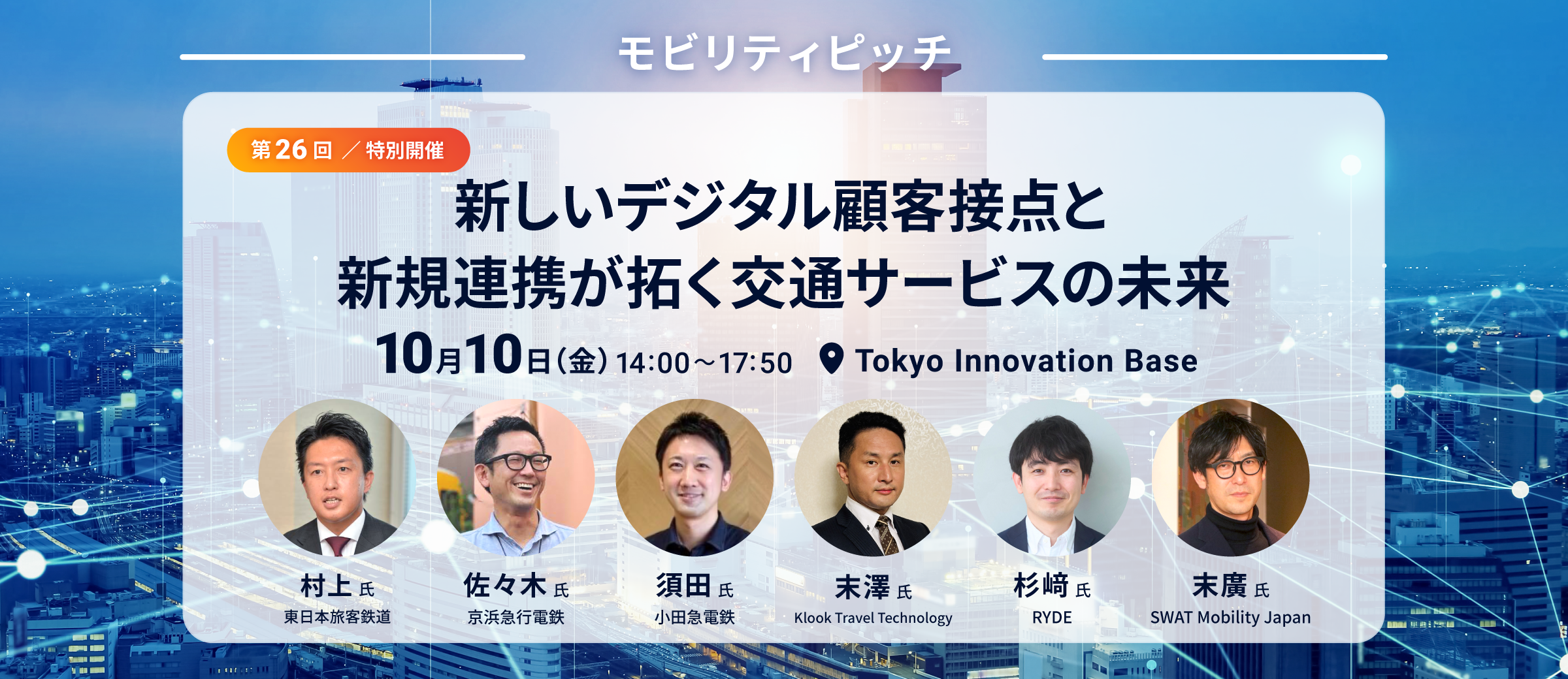 第26回ではハイブリッドで開催し、テーマ「新しいデジタル顧客接点と新規連携が拓く交通サービスの未来」にて、6名の方々にご登壇いただきます。