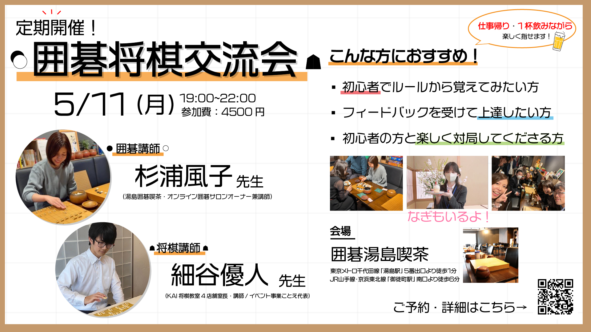 囲碁や将棋を一緒に楽しめる新しい仲間と出会えるイベントです✨