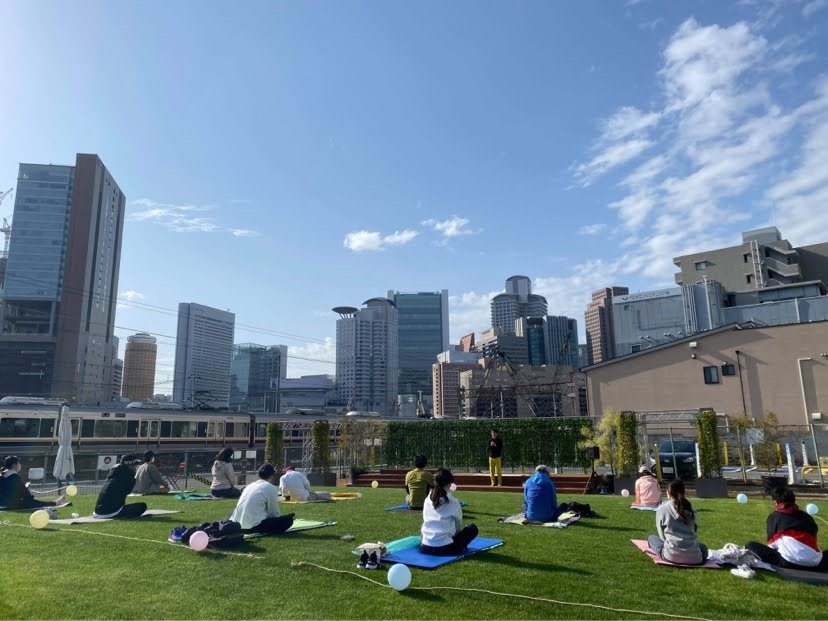 「うめきたスカイヨガ」は、ヨガの流派や形にこだわらず、今ここでの出会いに心から喜びを感じ、小さな思い出を積み重ねていくことを目指したアウトドアヨガクラスです。