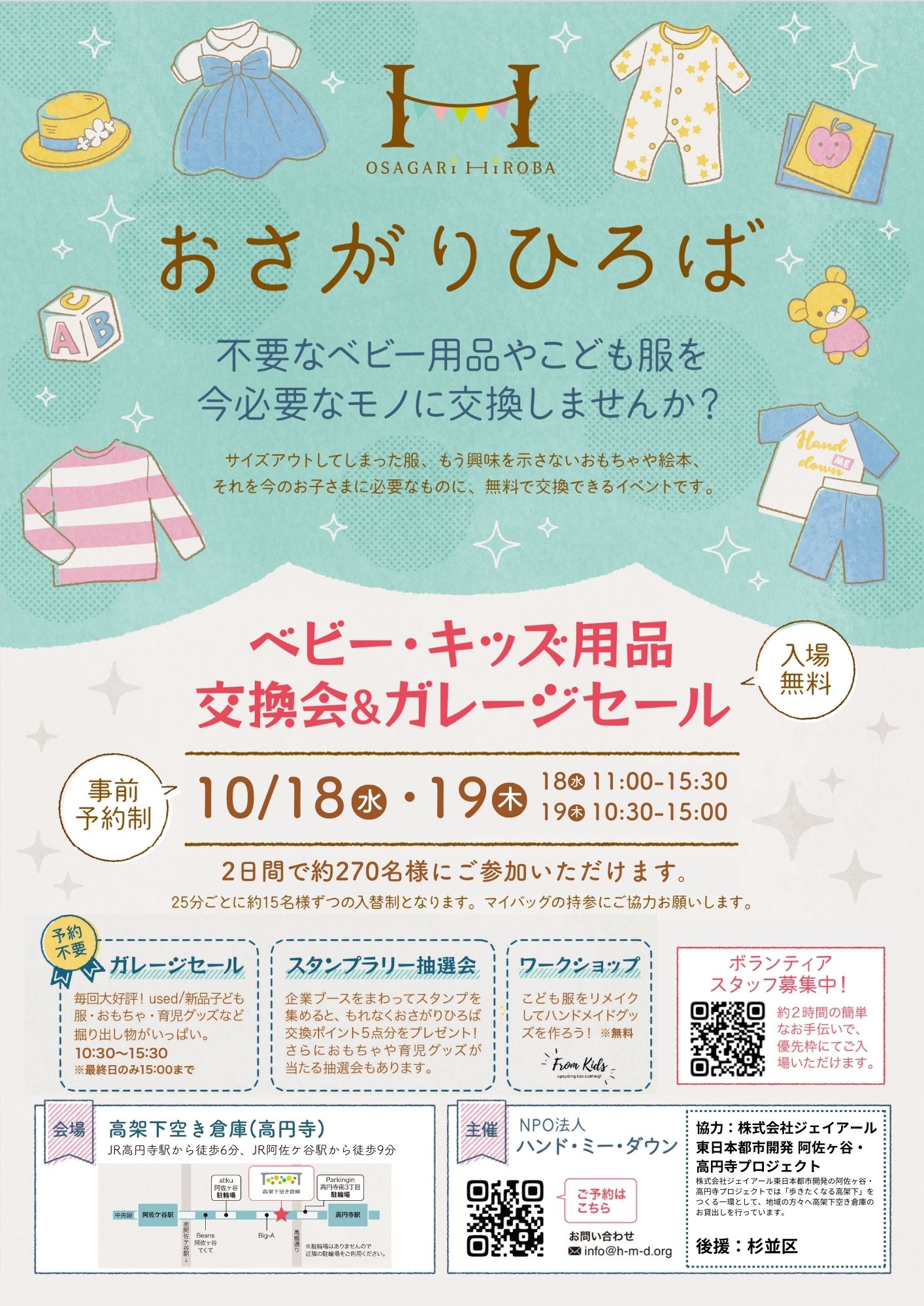 「おさがりひろば」継続のためにぜひガレージセールでのご購入をお願いします!