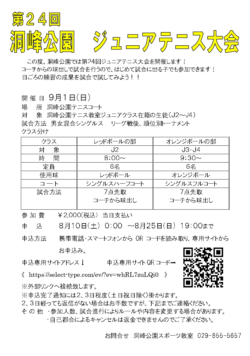 イベント名:第24回洞峰公園ジュニアテニス大会
