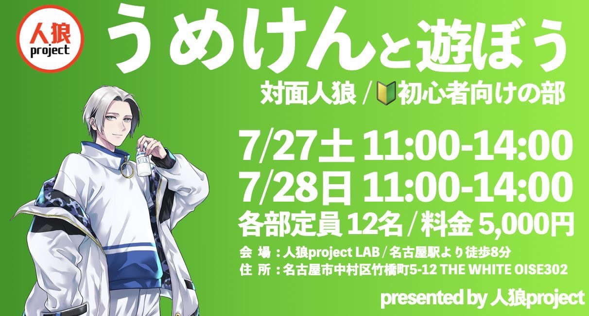 【対面人狼】7/27(土).7/28(日)うめけんと遊ぼう