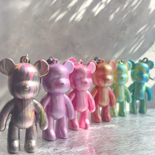 真っ白なくまさんにお好きなカラーの絵の具を垂らしてマーブル模様のくまさんが作れます。
