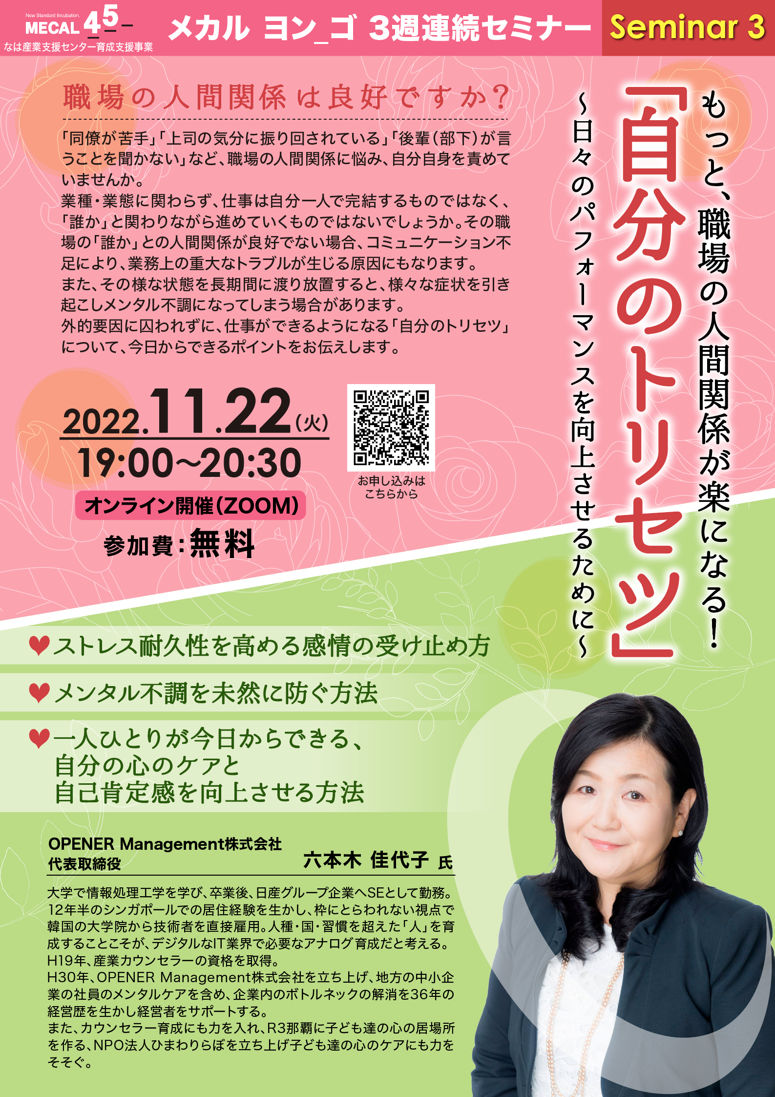 「もっと、職場の人間関係が楽になる!『自分のトリセツ』~日々のパフォーマンスを向上させるために~」セミナーのお申込みフォームです。