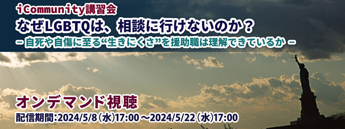 広くLGBTQの相談援助において何が必要なのかを学び、事例検討を通して多様な性のあり方の尊重への理解を深めるオンライン講習会です。多くの方の参加を期待しています。