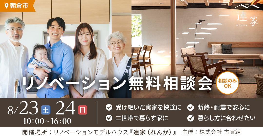 当日は「リノベーションモデルハウス「連家(れんか)」のリノベーション実例を見学できます。
