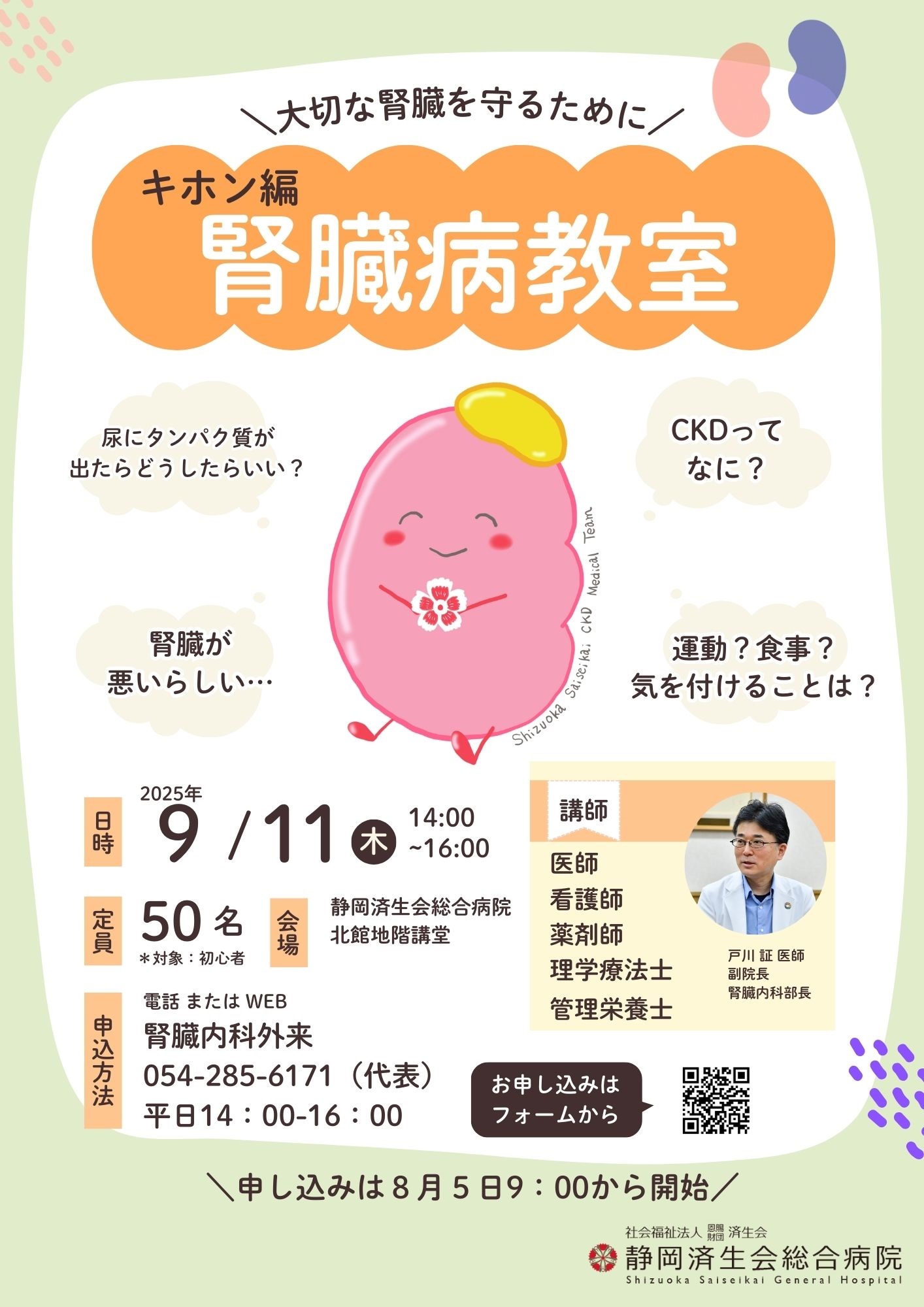 当院では、腎臓病をお持ちの方やそのご家族向けに、腎臓病教室を開催しています。