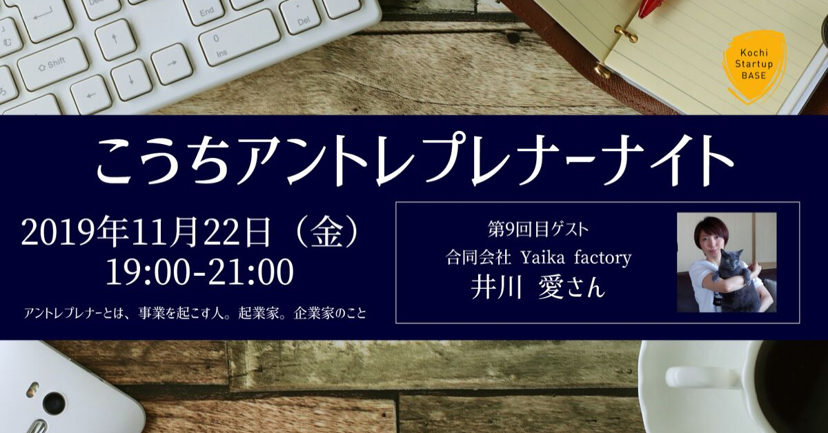 こうちアントレプレナーナイト、第9回目となるセミナーでは、合同会社Yaika factory 代表・井川愛さんをゲスト講師にお迎えします。