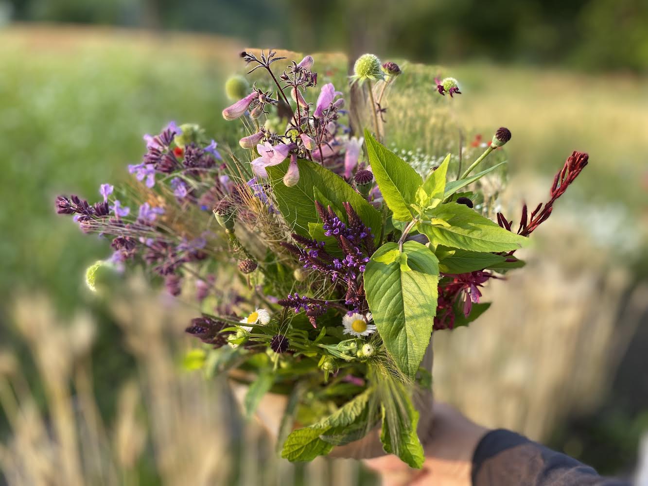 ワークショップにご参加頂けなくても、7月16.17.18日は赤い小屋にてハーブや草花を並べて、お話ししながらその場でみたててブーケに束ねさせていただきます。