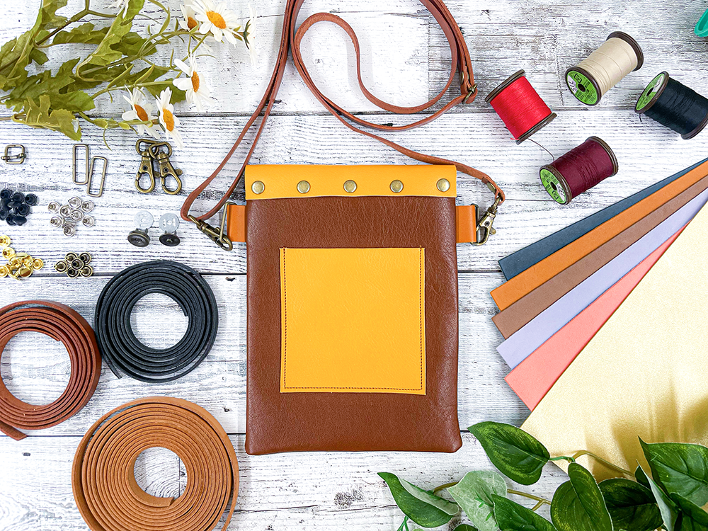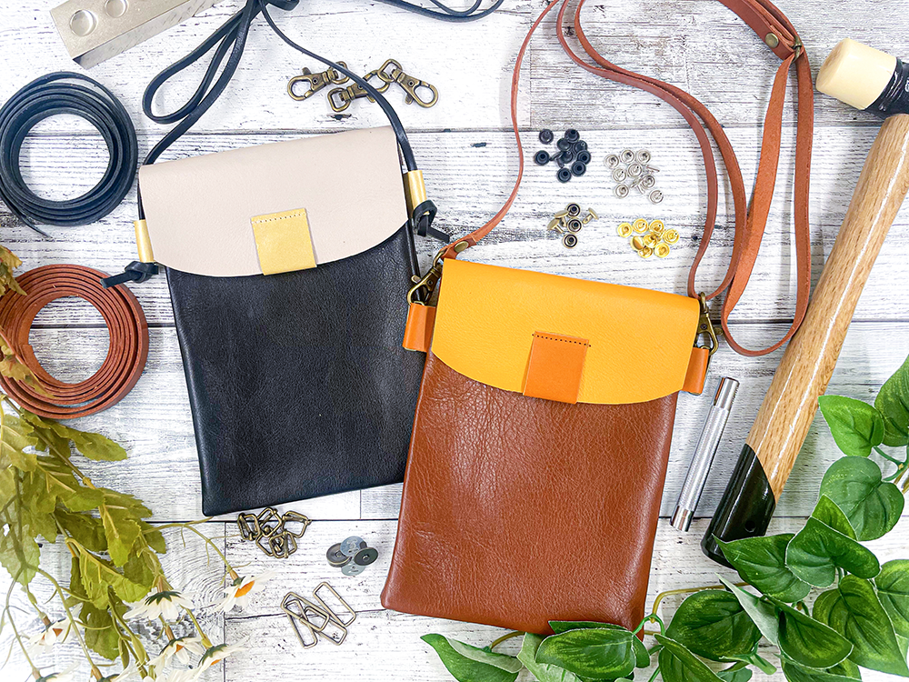 エクシムプロ極で作る「色の組み合わせを楽しむレザーミニサコッシュ」