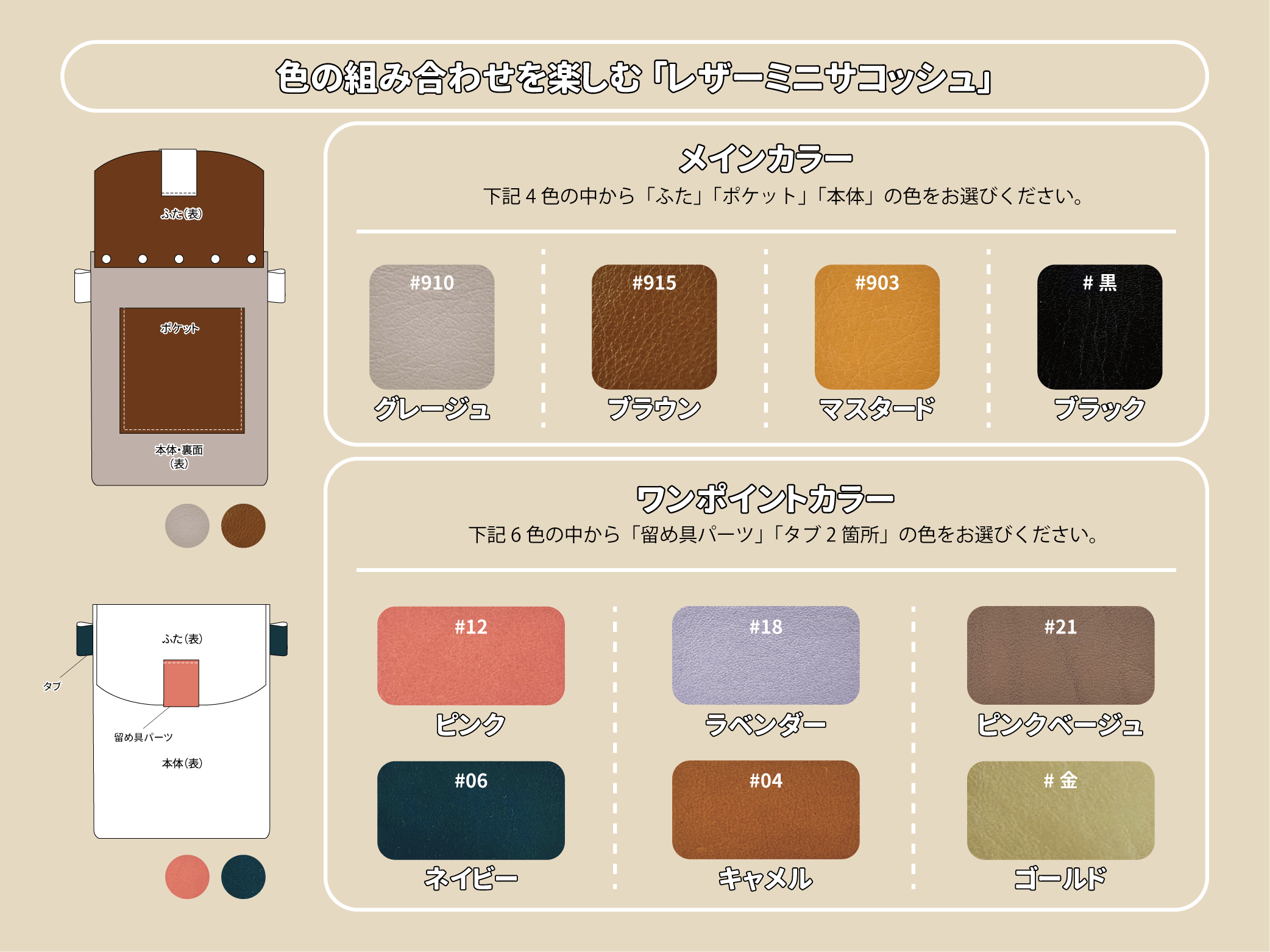 秋冬にぴったりなアースカラーやニュアンスカラーの中から、合わせて10色のレザーをご用意しました。