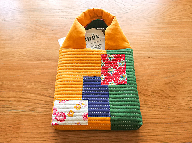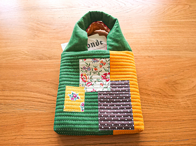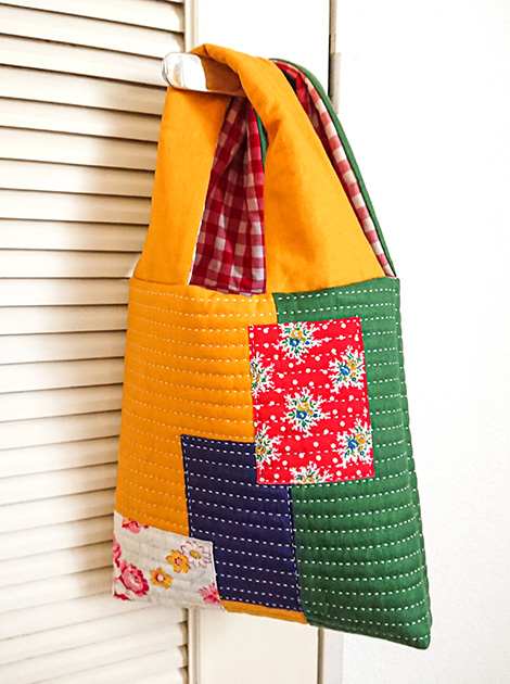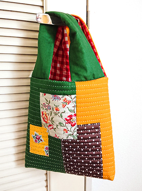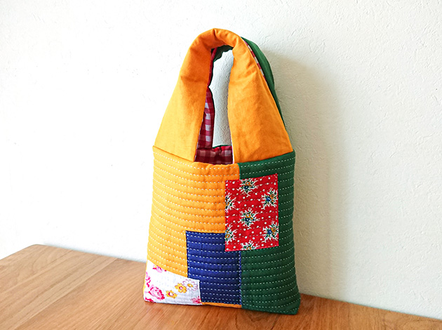 コラージュ布の配置や持ち手の付け方でバリエーションが広がります。