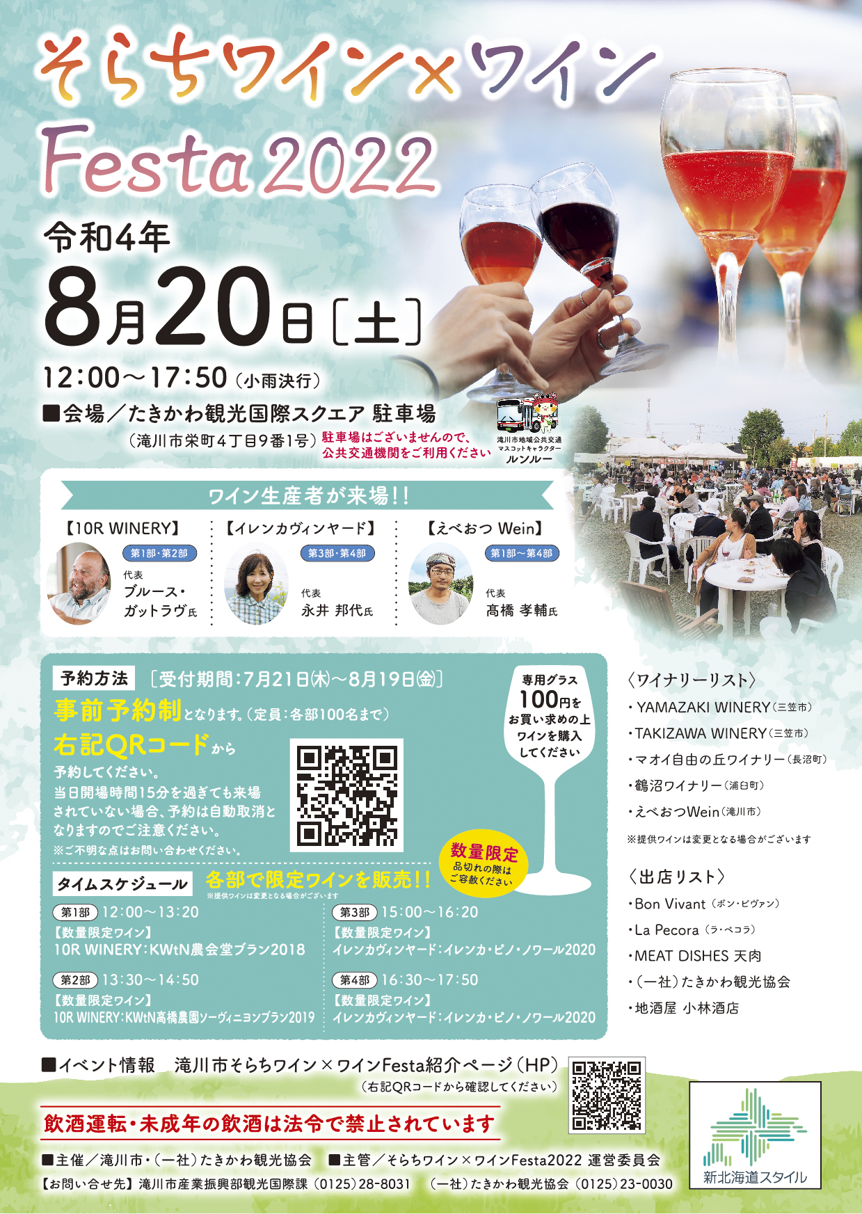公式ホームページ:(滝川市そらちワイン×ワインFesta2022)