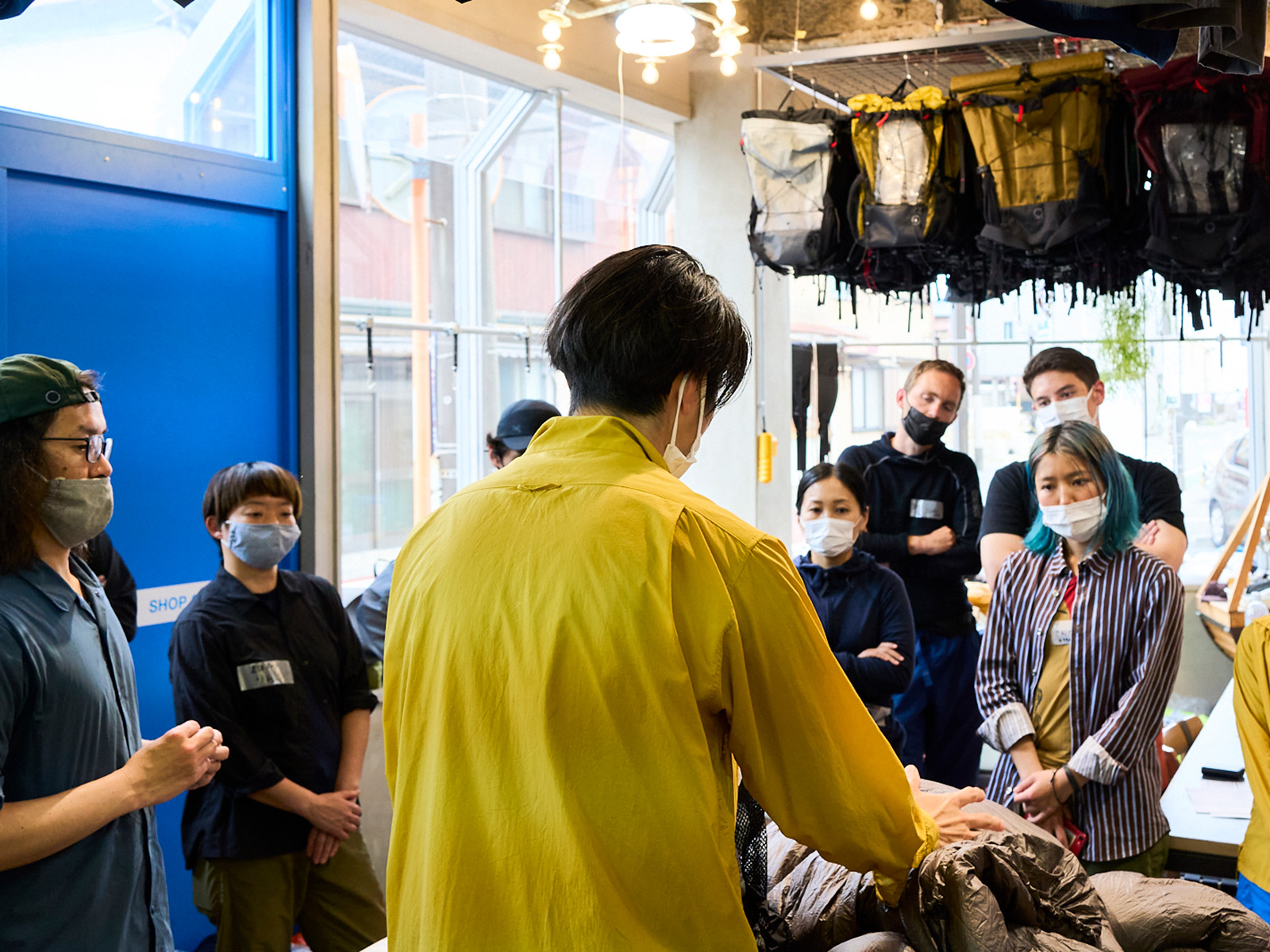 『山と道 材木座』店長の前原を講師に、各自が持参した道具のギアリストを作成しながら道具の取捨選択の方法を知り、UL装備化の手順やポイントを座学形式で学んでいきます。