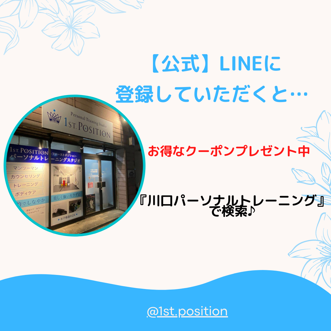 【川口パーソナルトレーニング】で検索⇨「クーポン」のコメント入力で発行致します