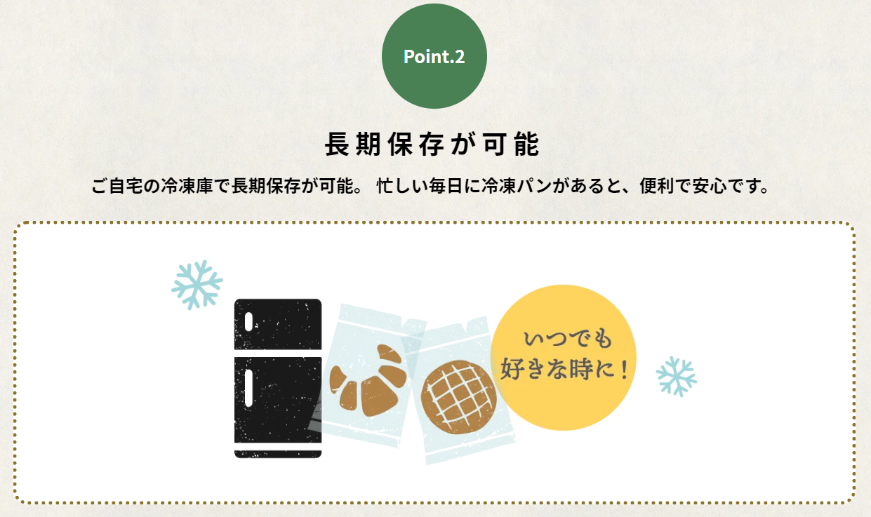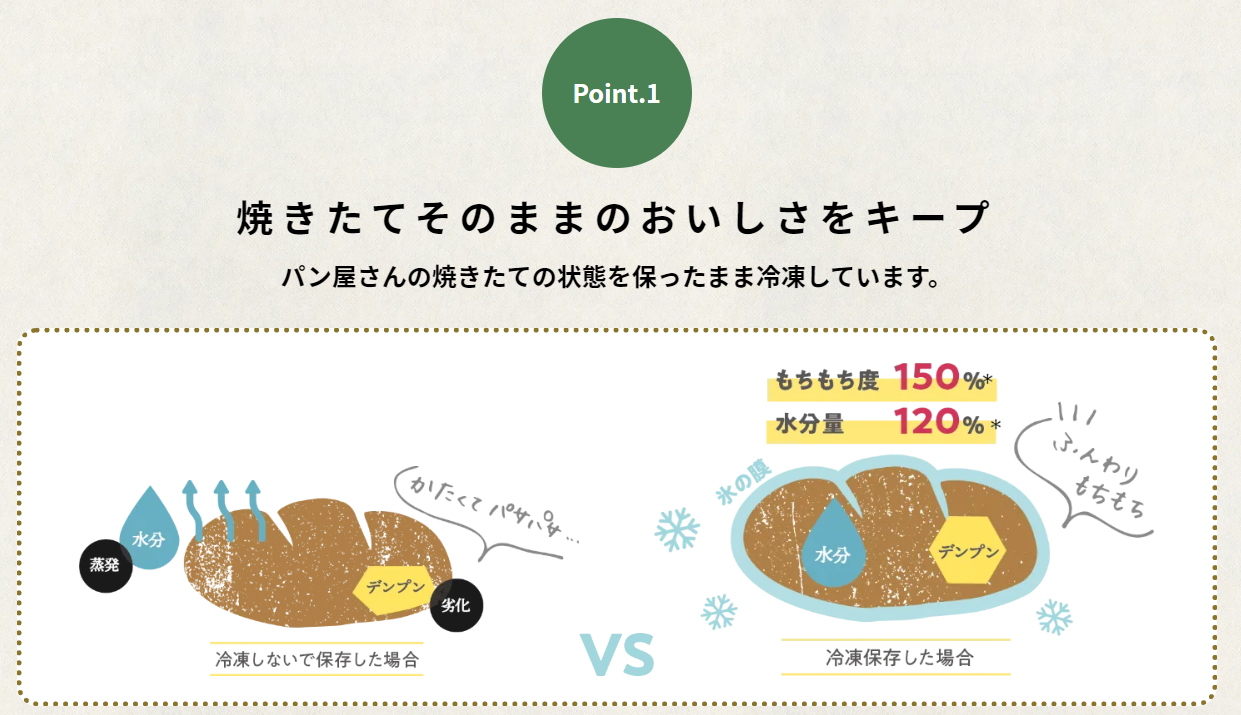 パン屋さんの焼きたての状態を保ったまま冷凍しています。