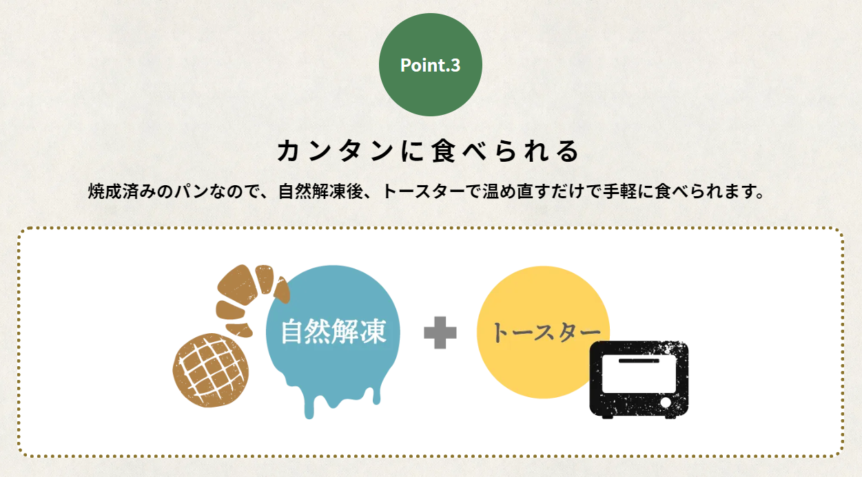 忙しい毎日に冷凍パンがあると、便利で安心です。