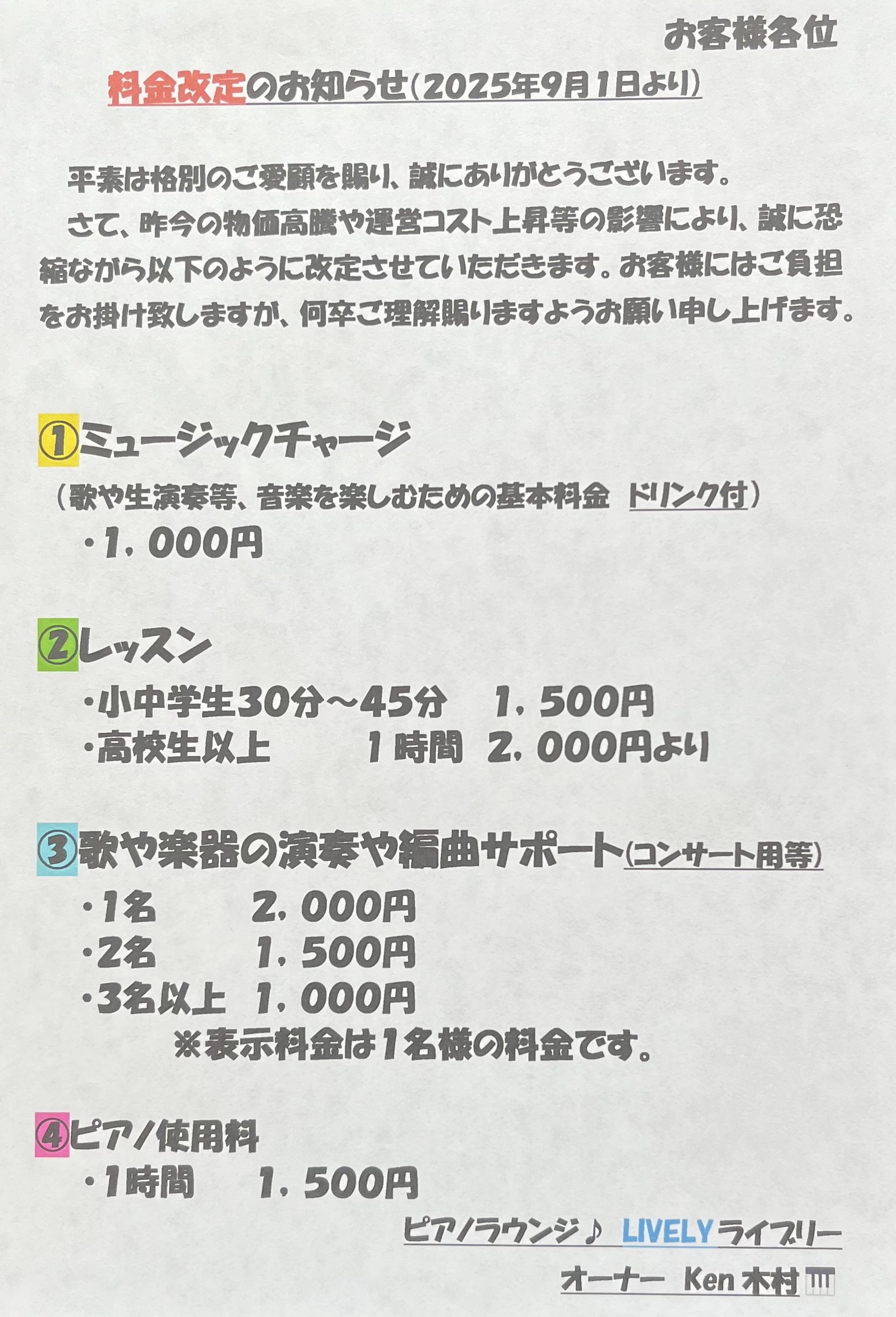 ピアノラウンジ LIVELY(ライブリー)です♬