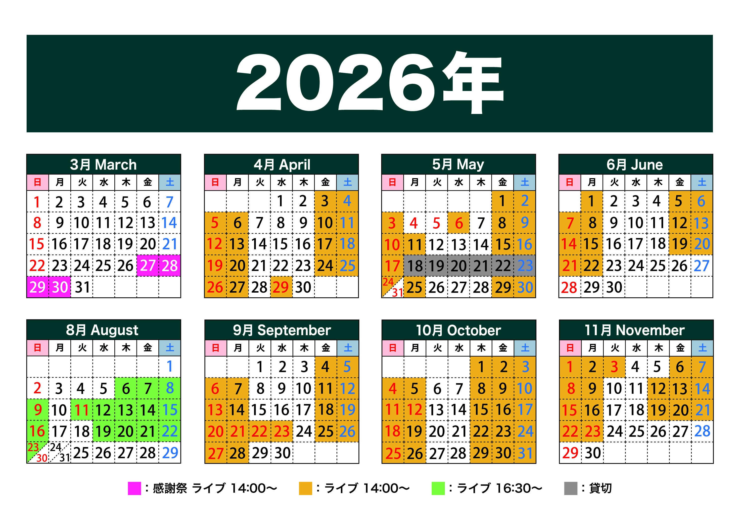 ・雨天時は、限定人数での室内ライブに切替えご案内します。