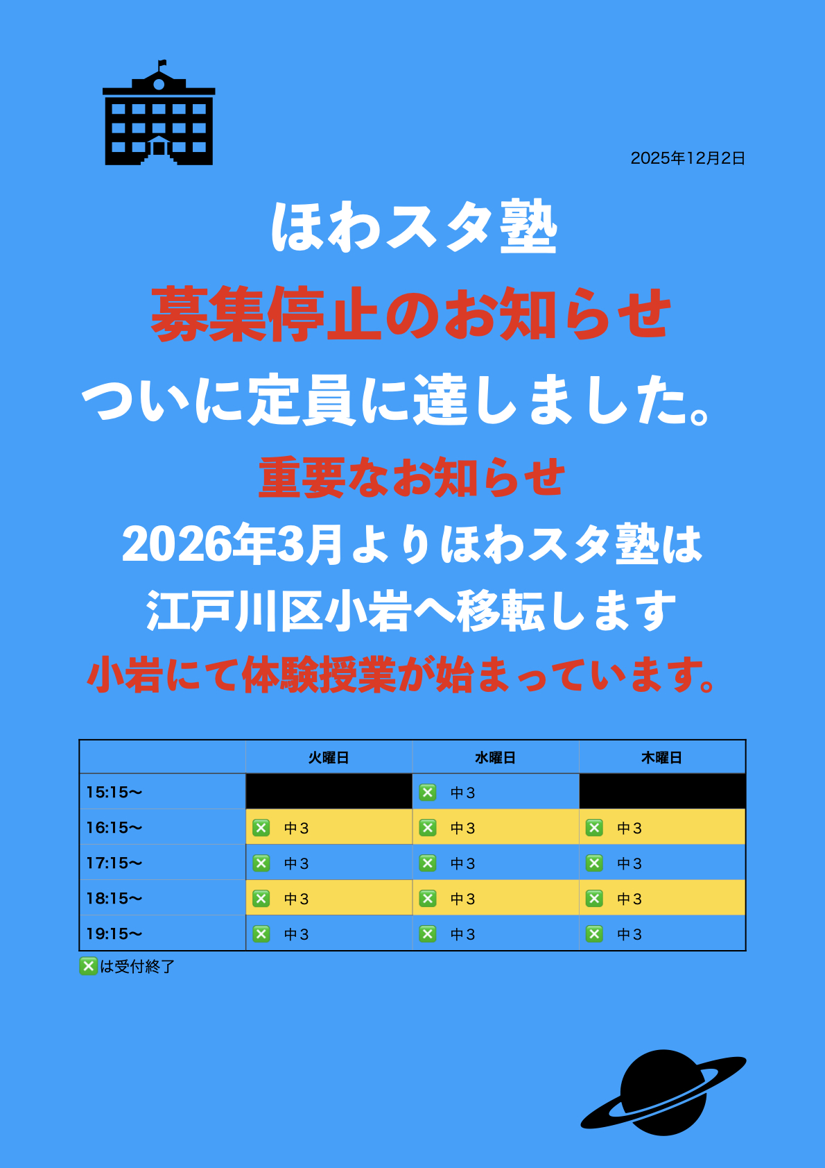 国語・数学・英語の主要3教科は小学校からの積み重ねであるために学習の成果はすぐには期待できません。自分の努力が成果に繋がりにくいことにより学習意欲が低下してしまう生徒が多いのが現実です。その点において「理科」は教え方次第で、自分の努力が学習成果に繋がりやすい教科なのです。まず「理科」の成績を上げることにより生徒の学習意欲を高められると確信して、理科専門のほわスタ塾を開きました。