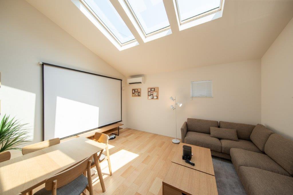 ・設置しているプロジェクターはXGIMIのHalo+となります。内容は事前にメーカーHPでご確認ください。施設にお持ち込みの端末(携帯、PC)とプロジェクターを繋ぐケーブルは置いてございません。また、只今内臓のアプリではNetflixは視聴することができません。