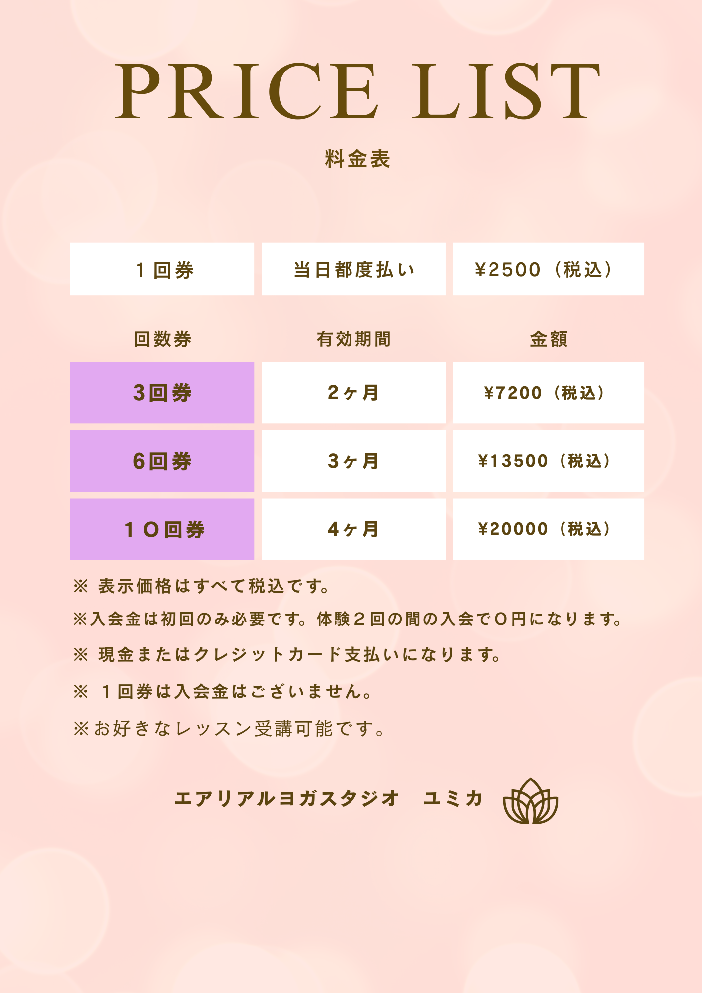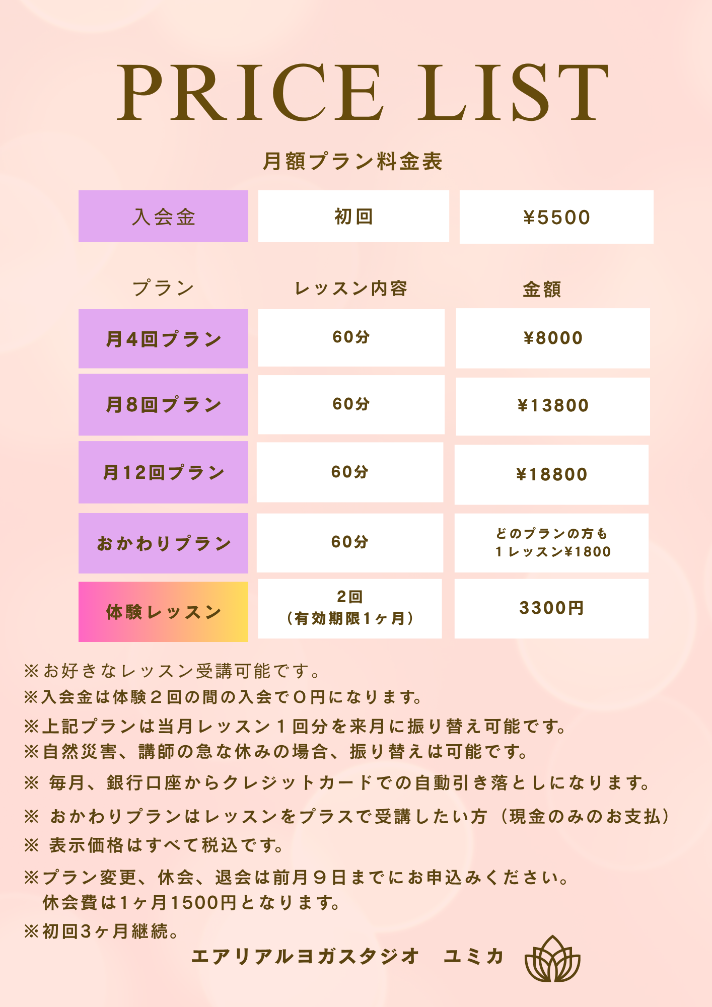 体験レッスンは2回3300円。