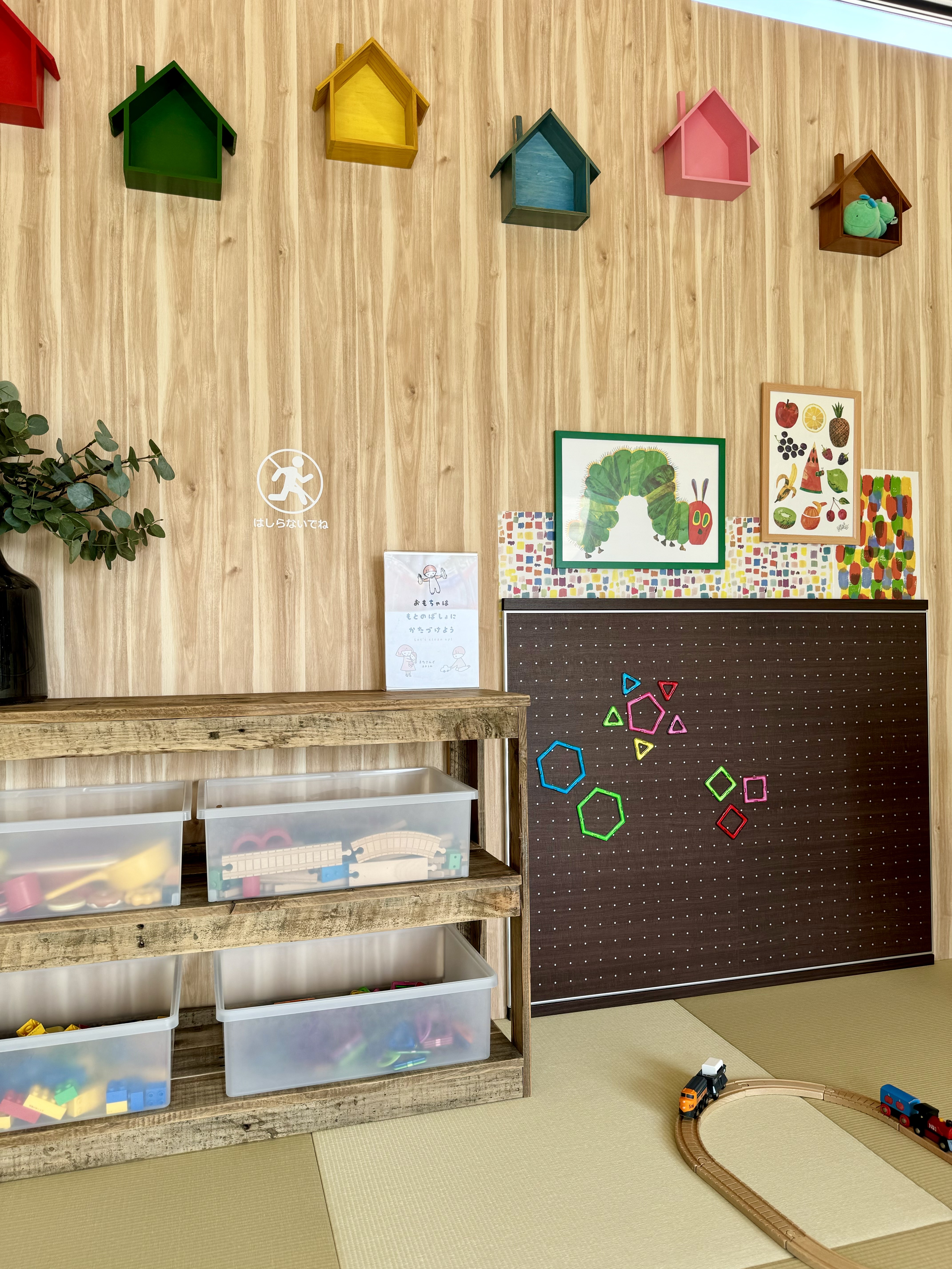 若林歯科の待合室にあるファミリールーム「いもむしテラス」内で、4か月から4歳までのお子さまが一緒に楽しく過ごせる工夫いっぱい、愛情いっぱいのスペースが託児サービス「いもむしルーム」です。