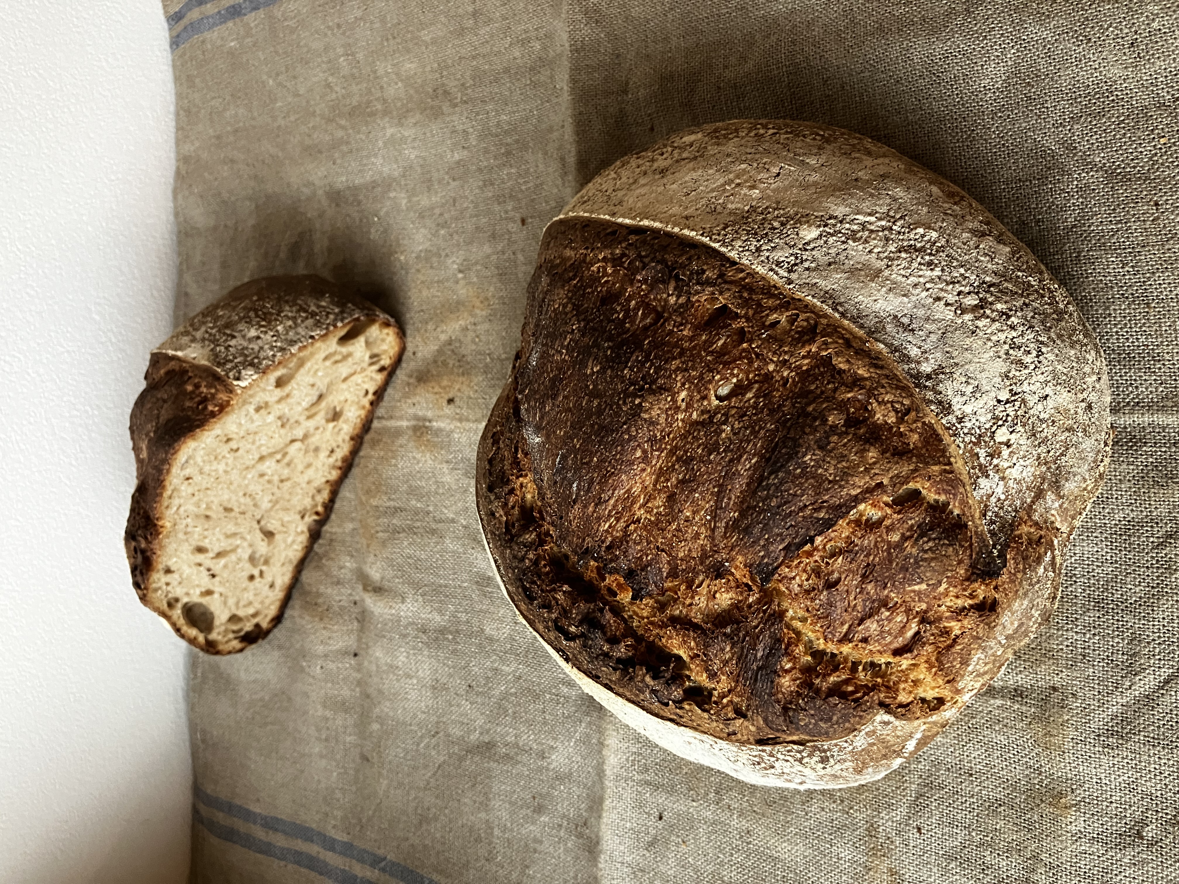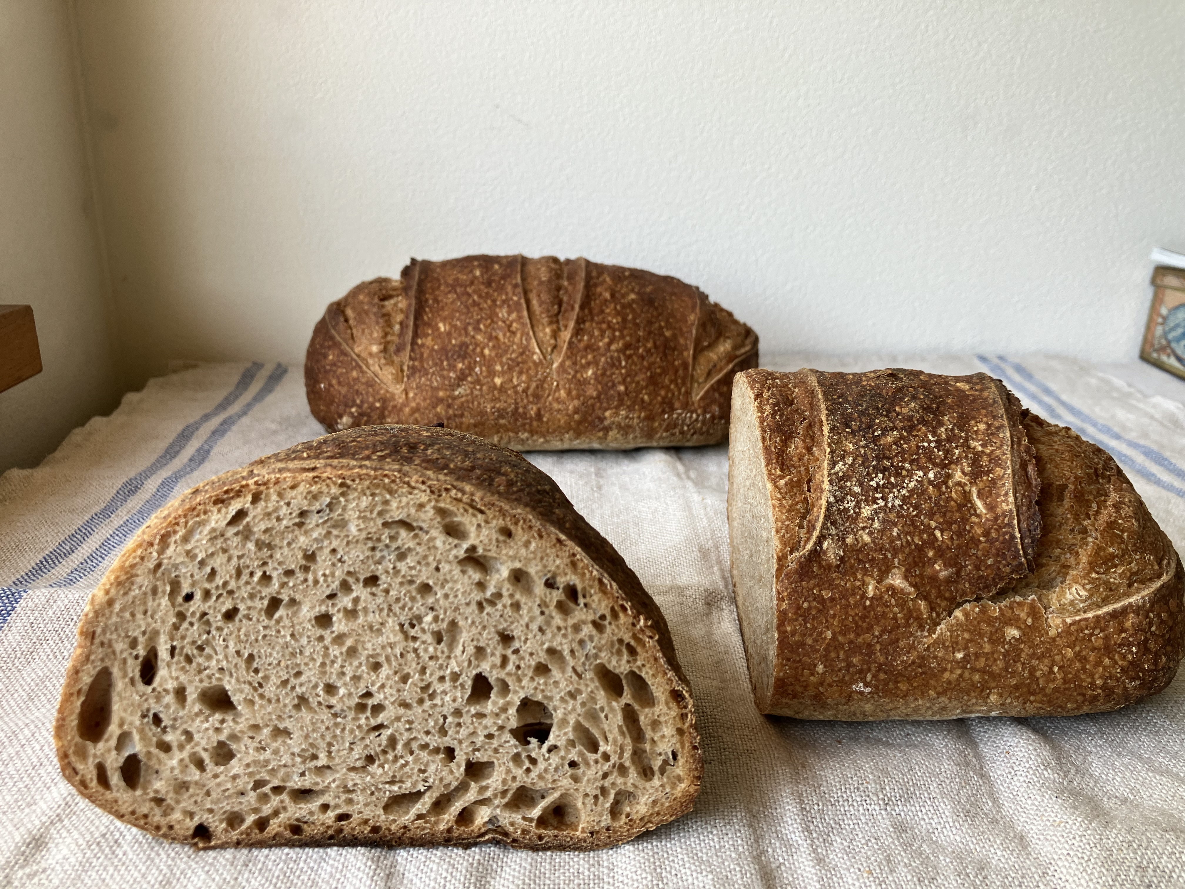 コンパン〈1個〉1400円税込〈1/2〉700円税込 □原材料・有機小麦全粒・自然栽培ライ麦全粒粉・有機ふすま(北海道)・発酵種・塩(フランス)