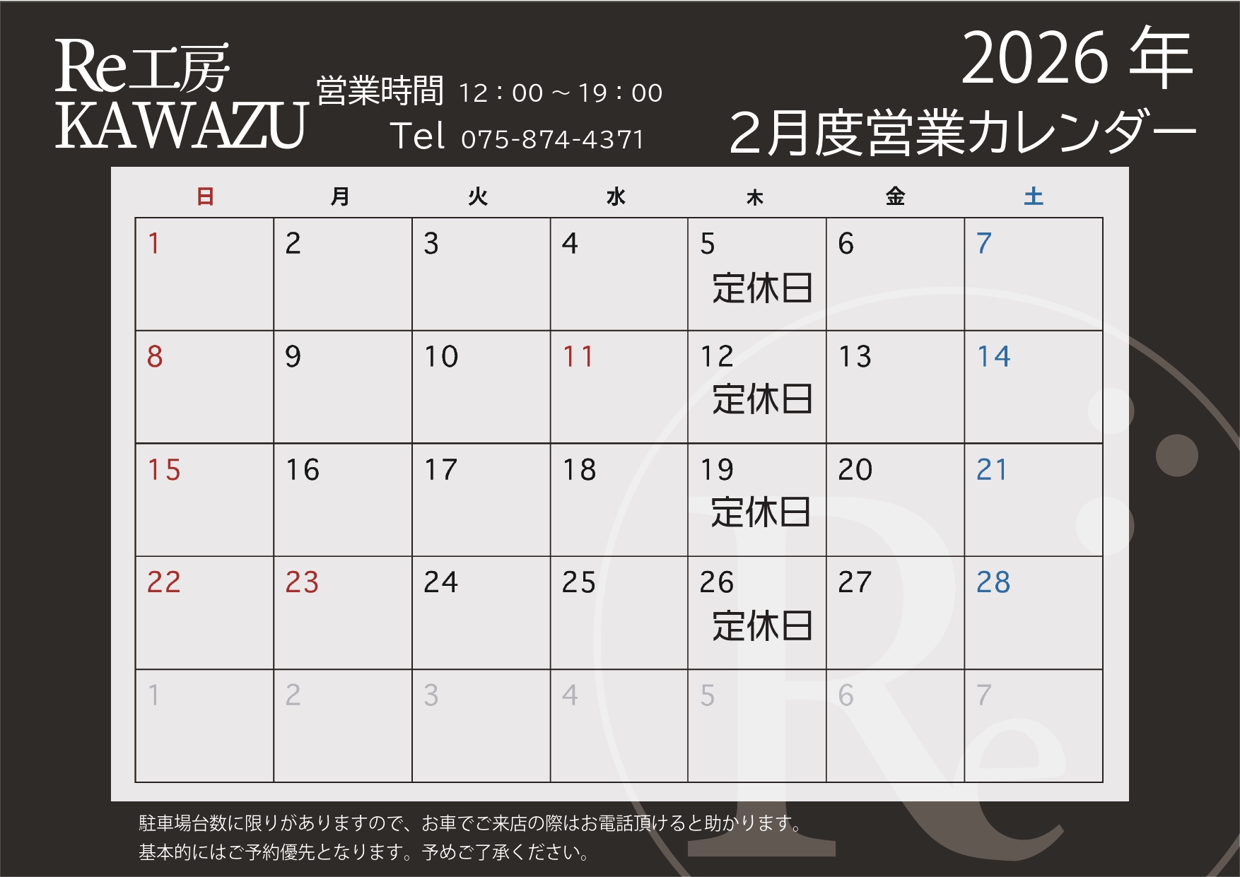 2026年2月の営業予定(修正版)