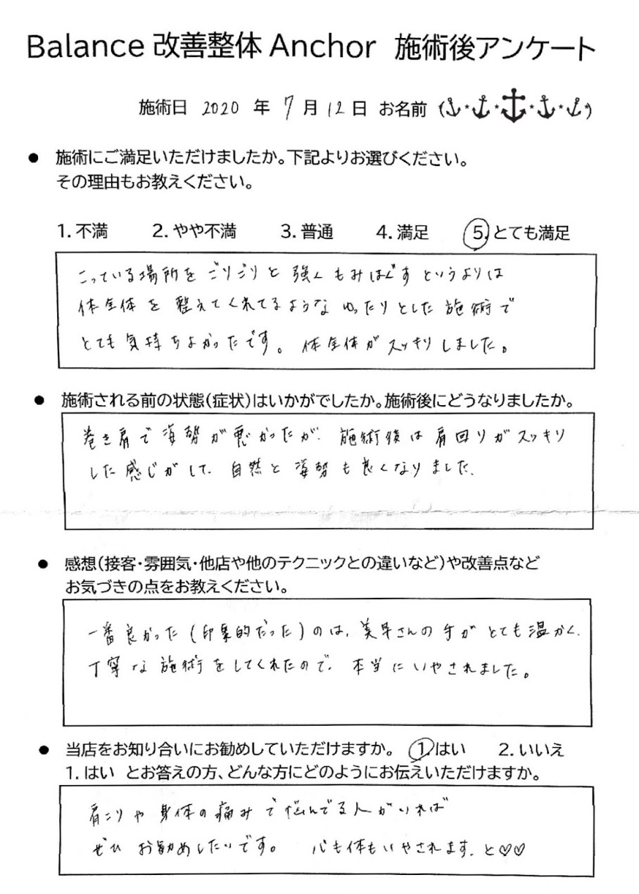 私自身の長年の腰痛・肩こりが、この施術と考え方により無くなりました。