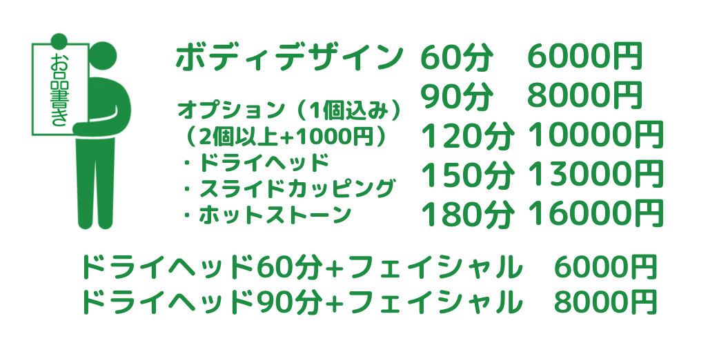 ・セラピストの体調不良、交通事情によりキャンセルとなりました際は当日キャンセル料は頂かず、次回ご予約時オプション1点無料サービスと致します