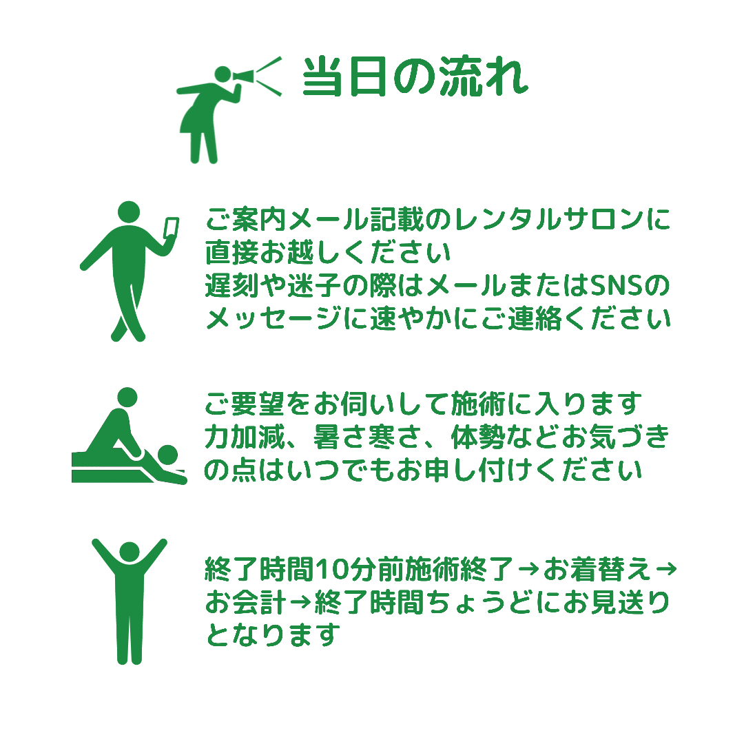 ・急な体調不良、事故、災害、交通事情の場合は例外となります サロン詳細をお送りしましたメールアドレス、HPのお問い合わせフォーム、またはSNSのDMにご連絡ください