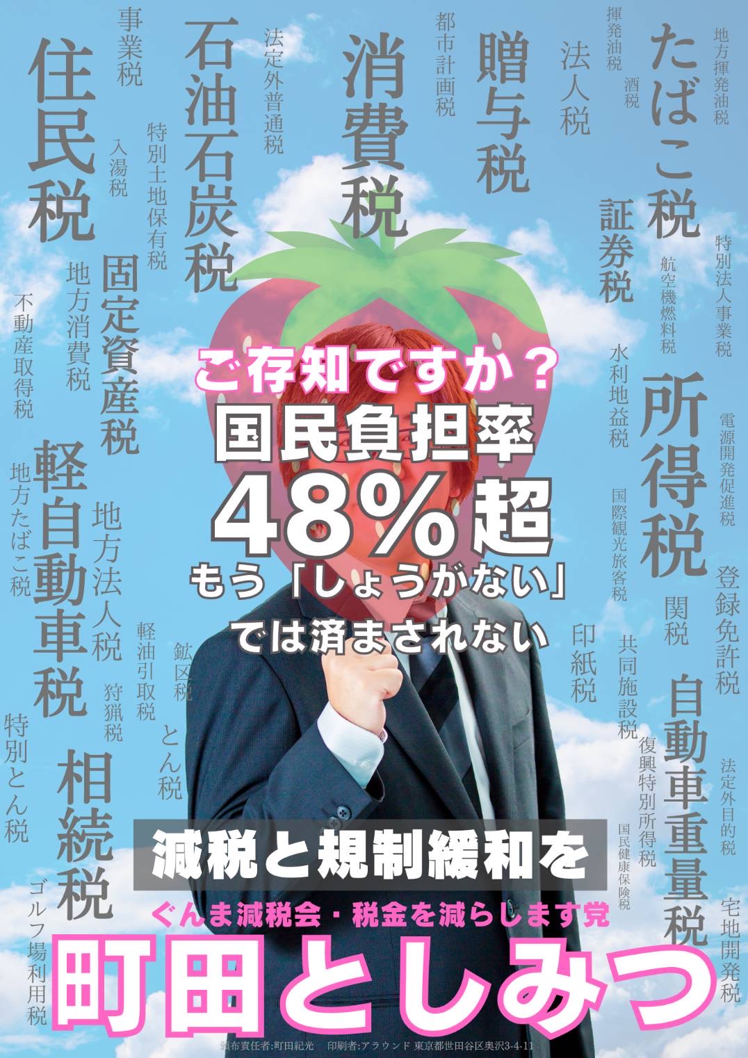 今の政治は、政治家と官僚が国民をATMにしています。経済成長するには、減税と規制改革です!