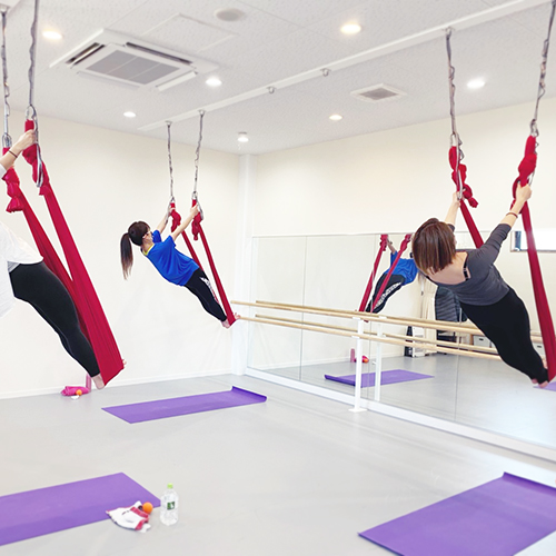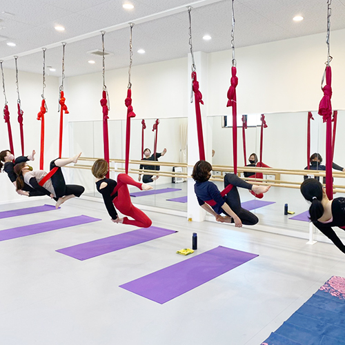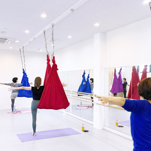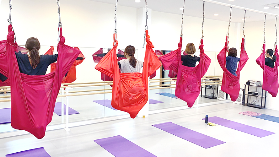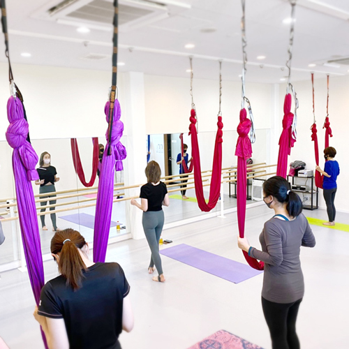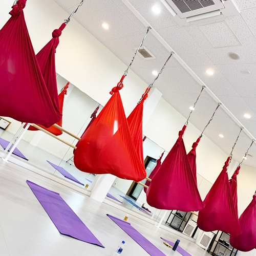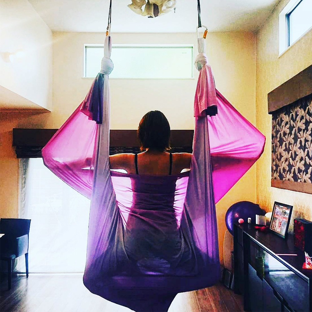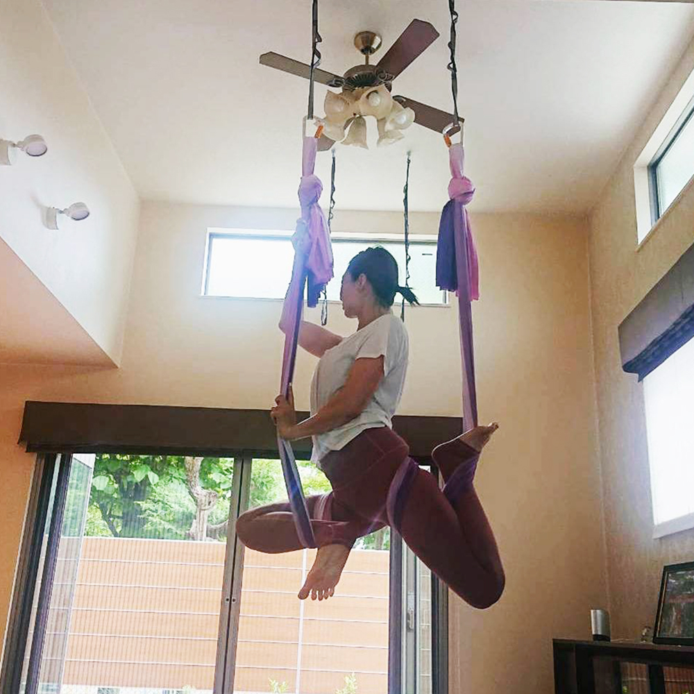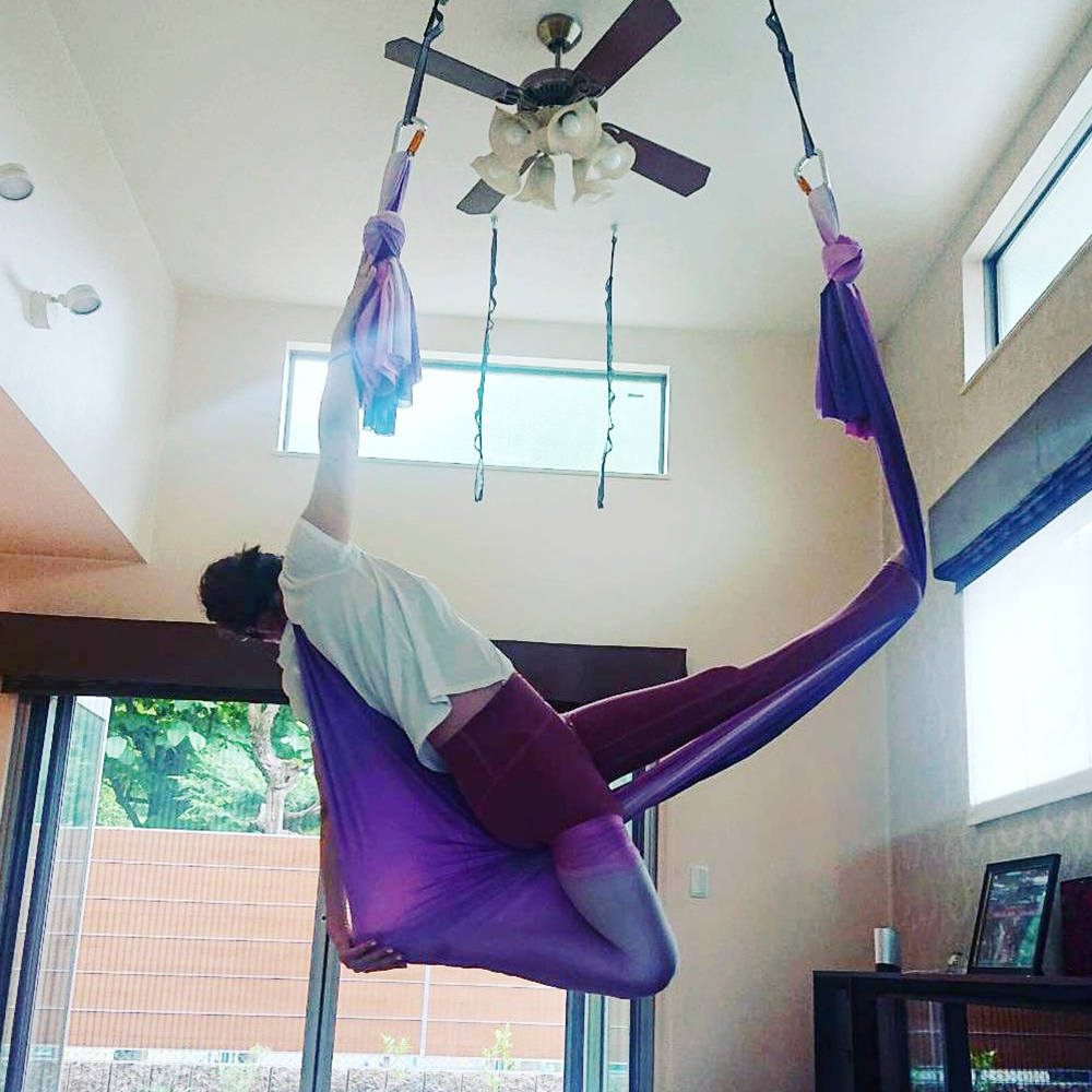 *脇の下にハンモックを挟むポーズを行うので、衛生の為、必ず袖のある動きやすいウェア(半袖可)を着用してください。